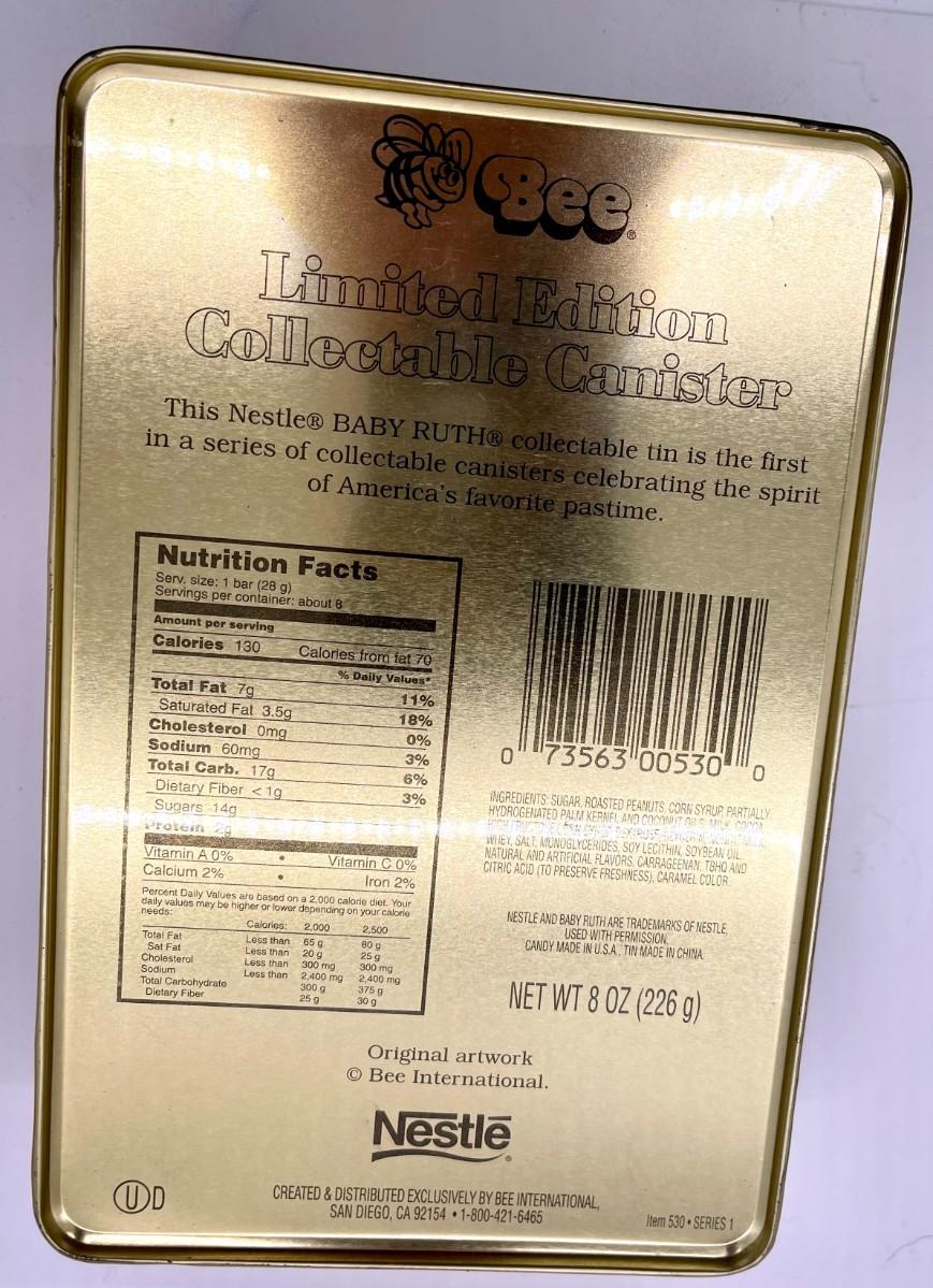 Nestle BabyRuth Candy Bar Tin Can Rectangular Baseball Players theme