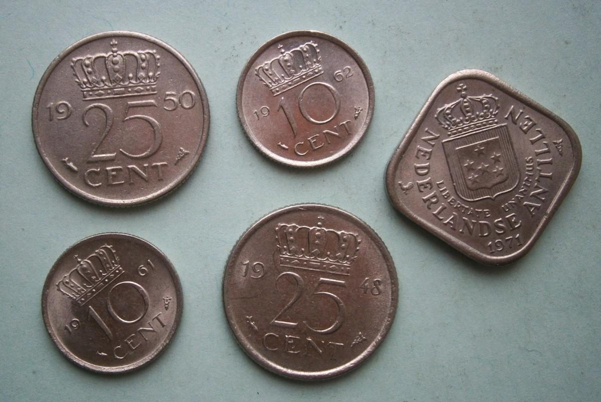 NETHERLANDS (5) Old Coins, dating from 1948 to 1971