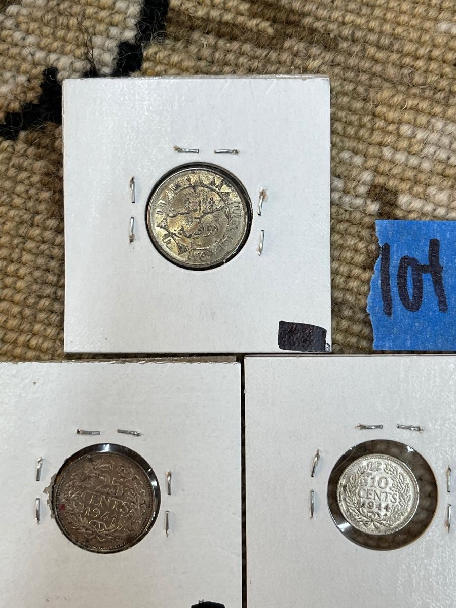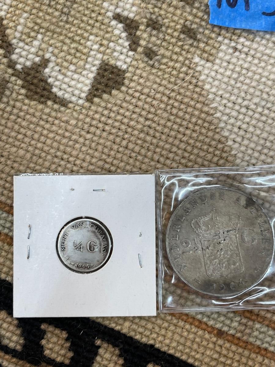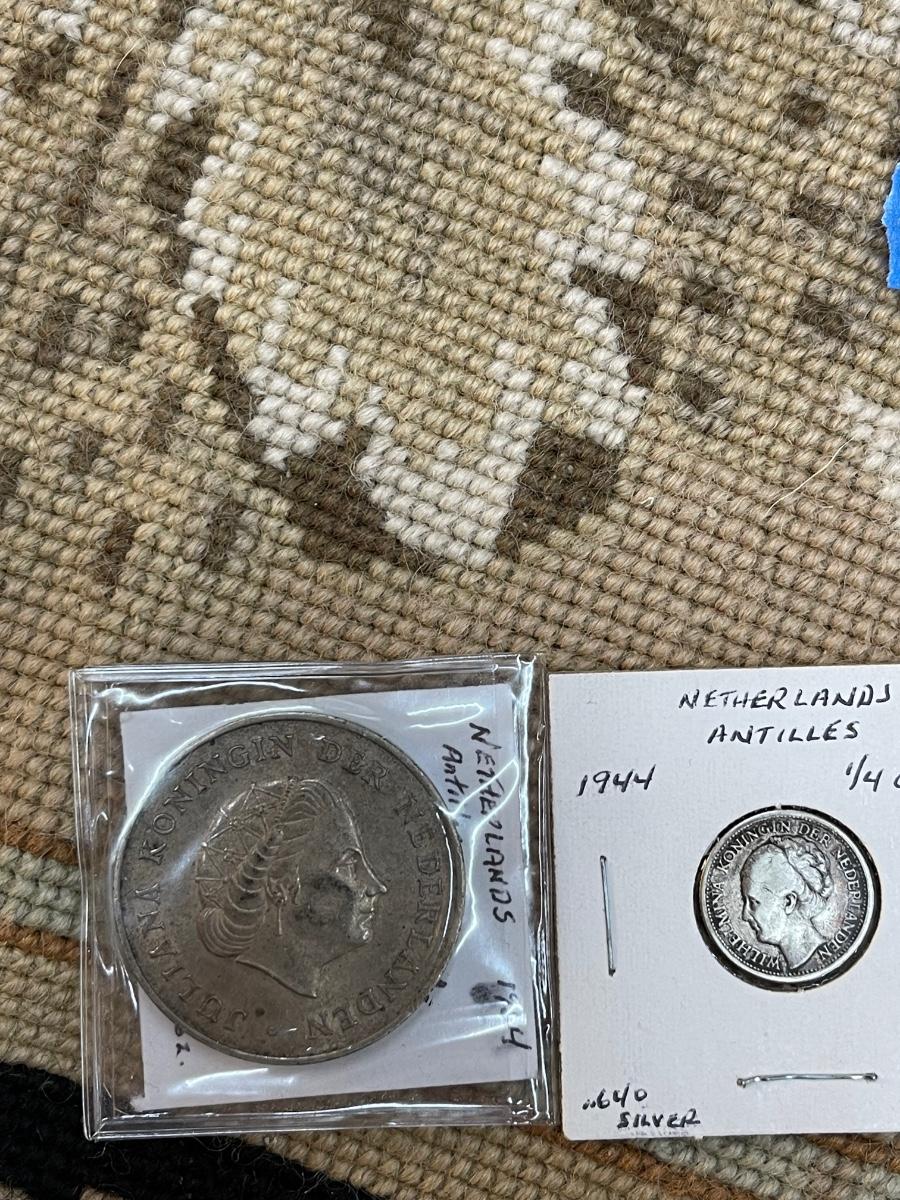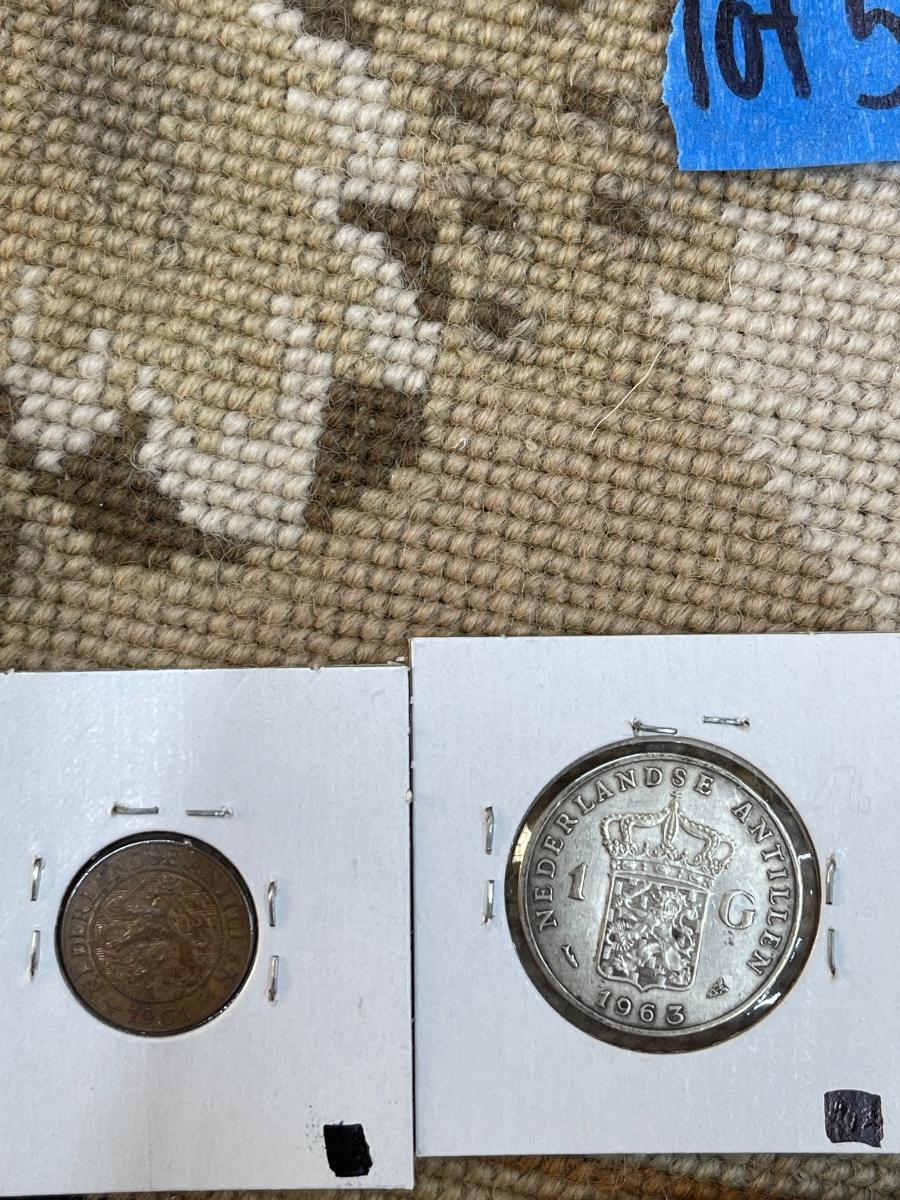 (9) vintage Netherlands coins - 1941P 1/4 glucklen, 1941 25 cents, 1944P 10 cents, 1961 1 cents, 1963 gulden, 1964 2-1/2 G, 1944 1/4 gulden, 1955 gulden, 1947 1/10 gulden