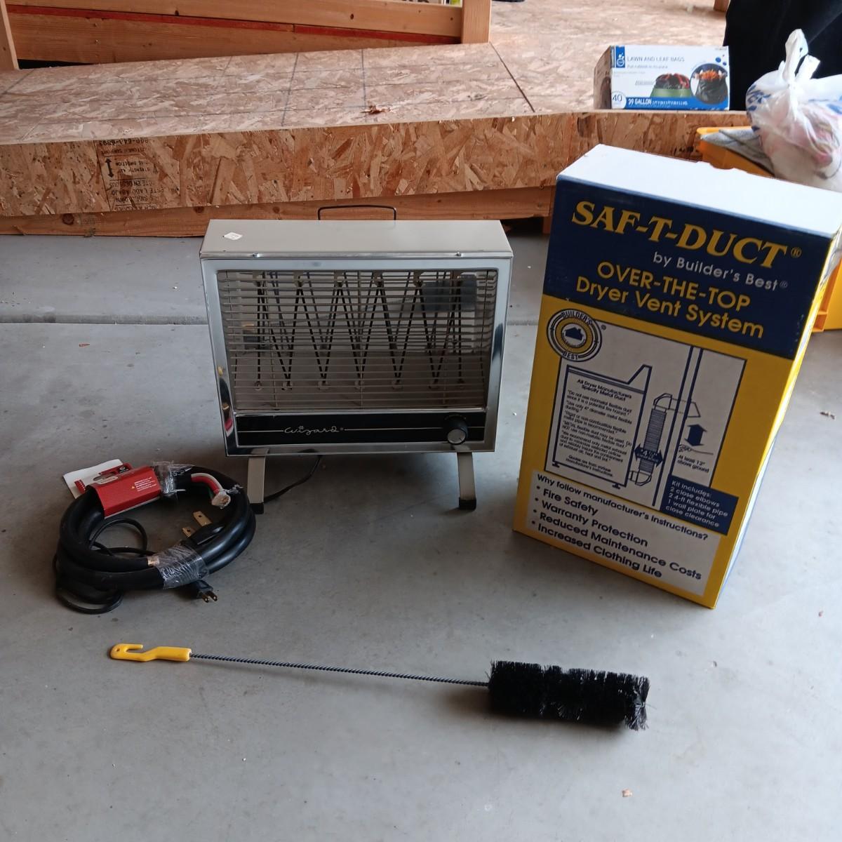 NEW 220 WATT RANGE CORD, WIZARD HEATER, NEW DRYER VENT AND VENT BRUSH