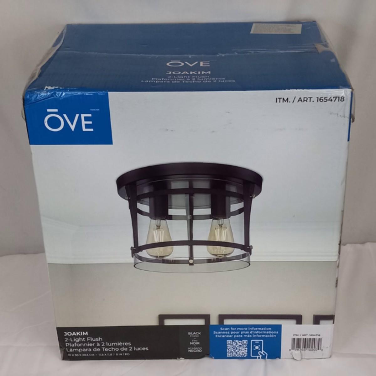 This is a brand new, open box 2-light flush mount ceiling fixture in a black finish.