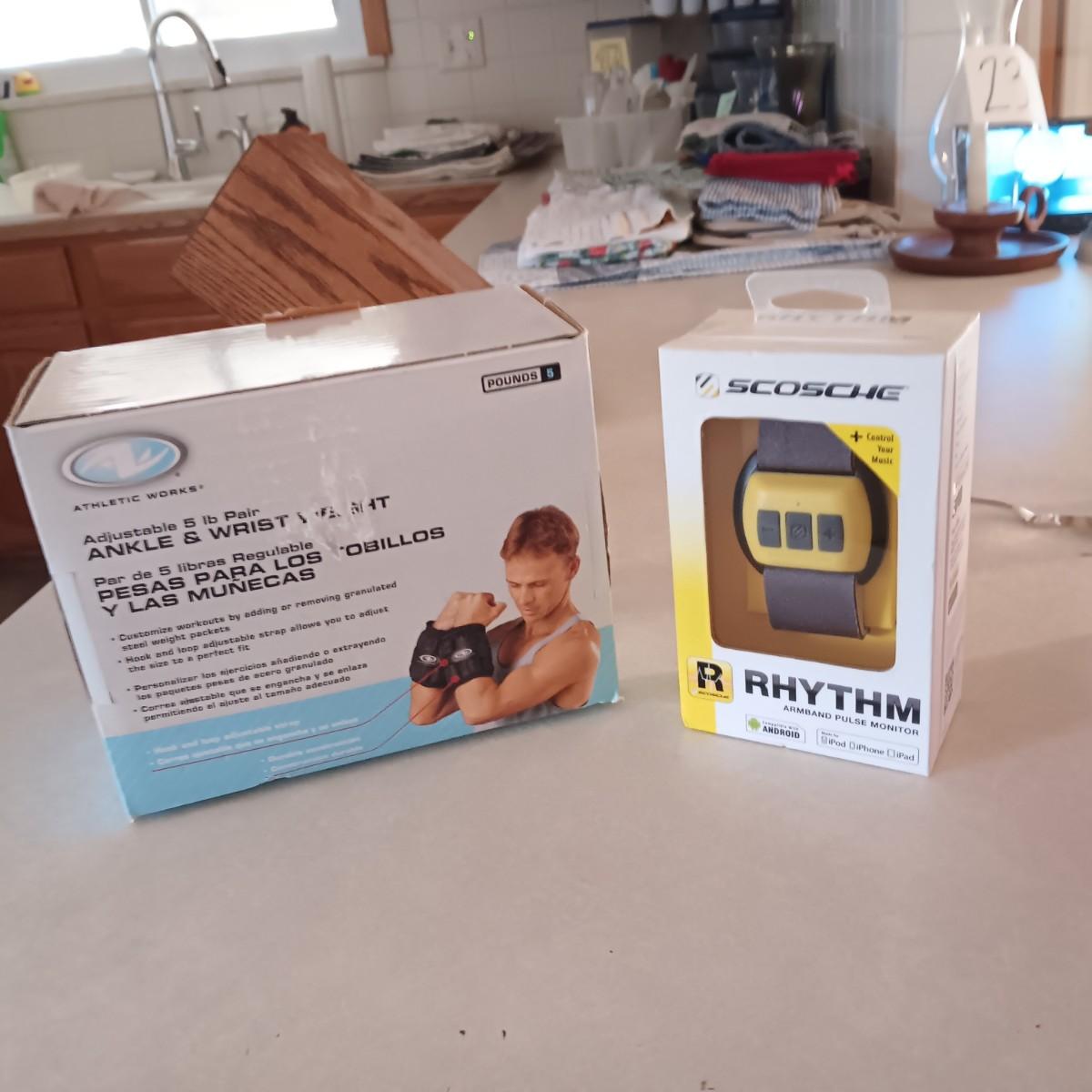 NEW 5 LB PAIR ANKLE/WRIST WEIGHTS & RHYTHM ARMBAND PULSE MONITOR