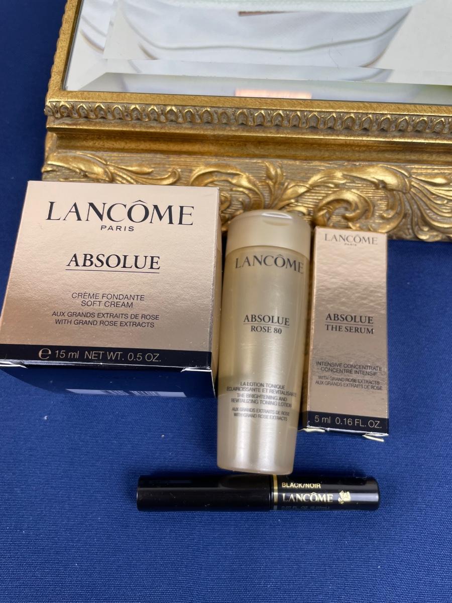 With .5 oz Absole Soft Cream, travel bag, mascara and more. All new.