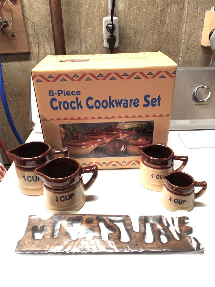 NEW 8 PIECE CROCK COOKWARE SET AND CROCK MEASURING CUPS
