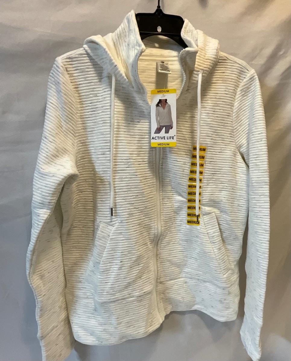 NEW Active Life jacket with hoodie/zipper White/gray Medium