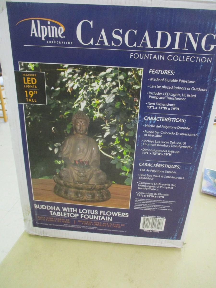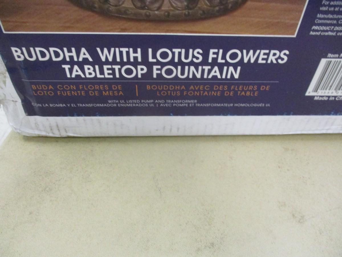 New Alpine Cascading Buddha With Lotus Flowers Tabletop Fountain LED 19" Tall