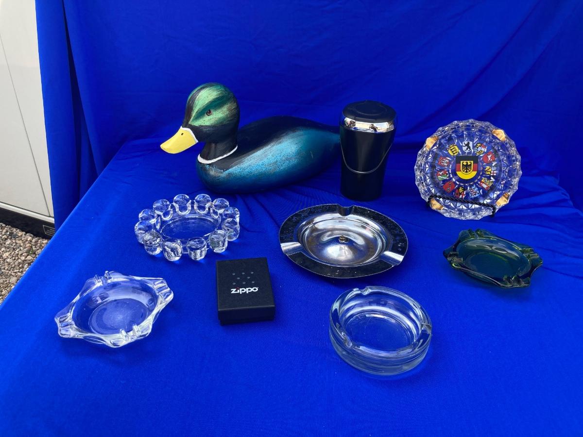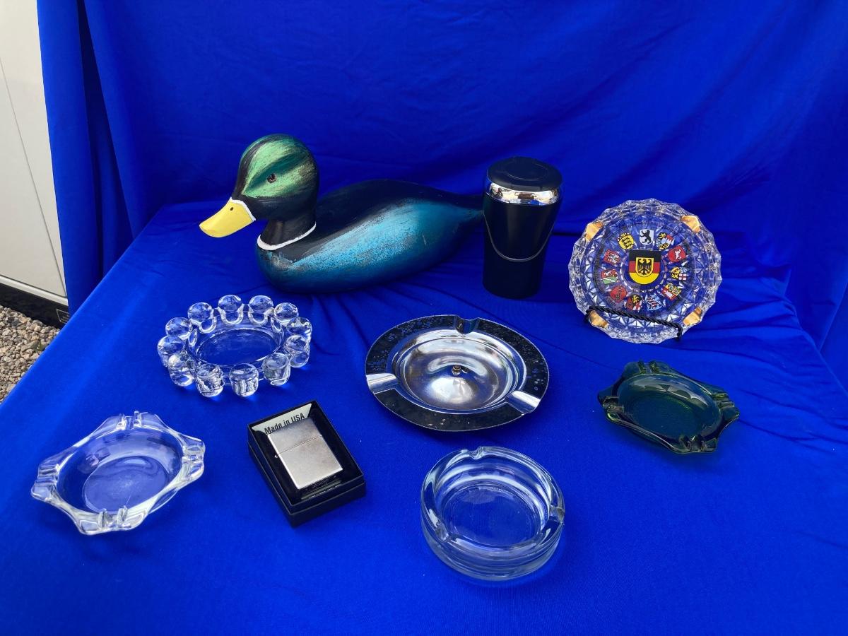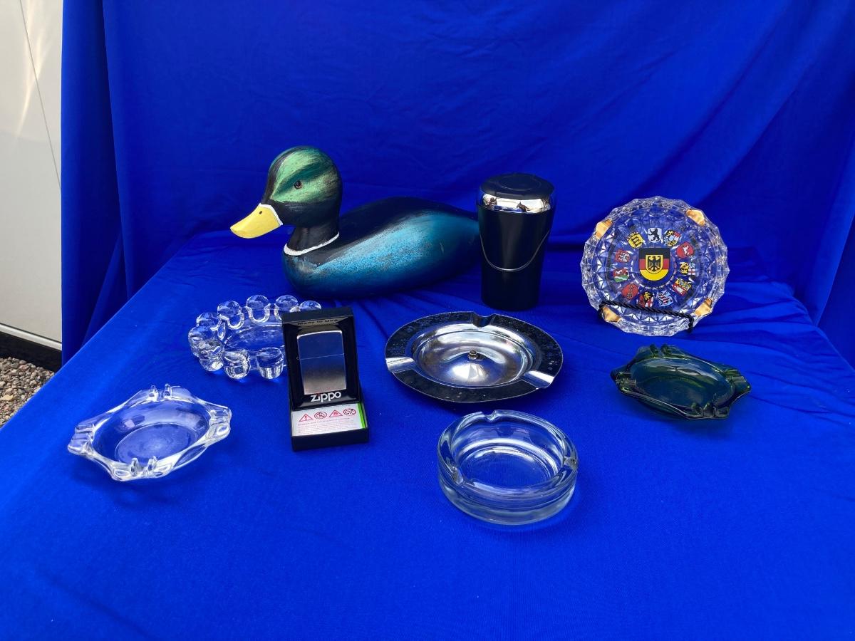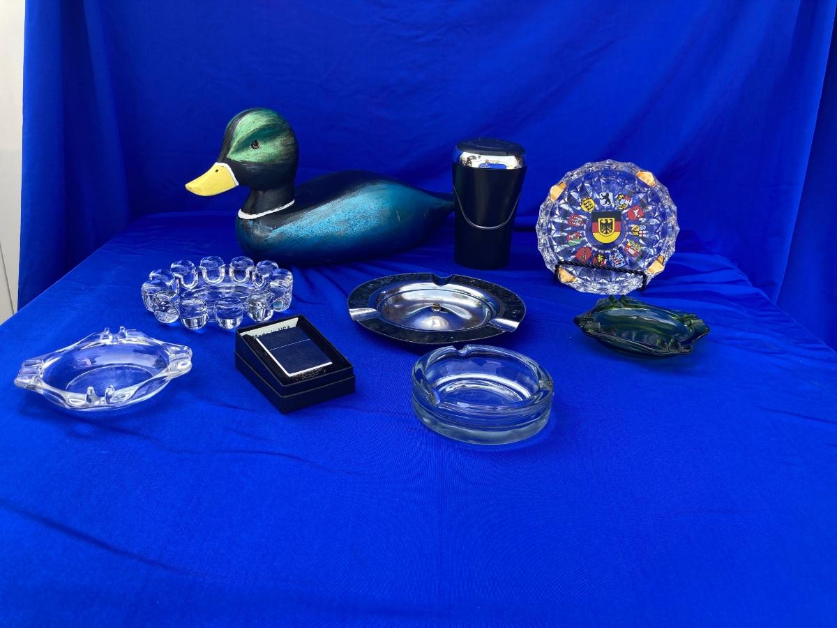 NEW AND OLD ASHTRAYS A HANDSOME MALARD DUCK & A ZIPPO