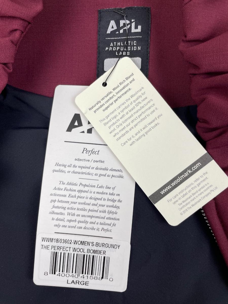 New APL Women’s Burgundy Perfect Wool Bomber Jacket Large