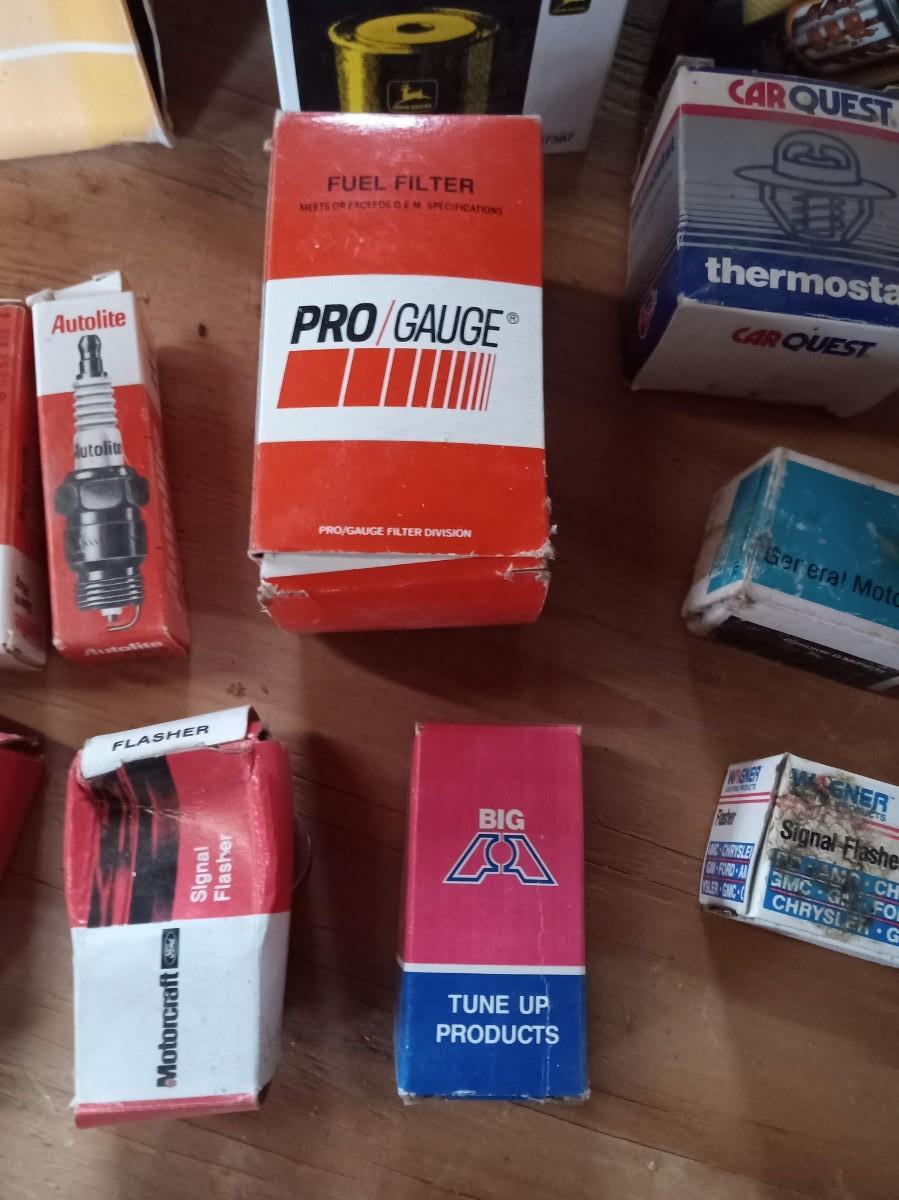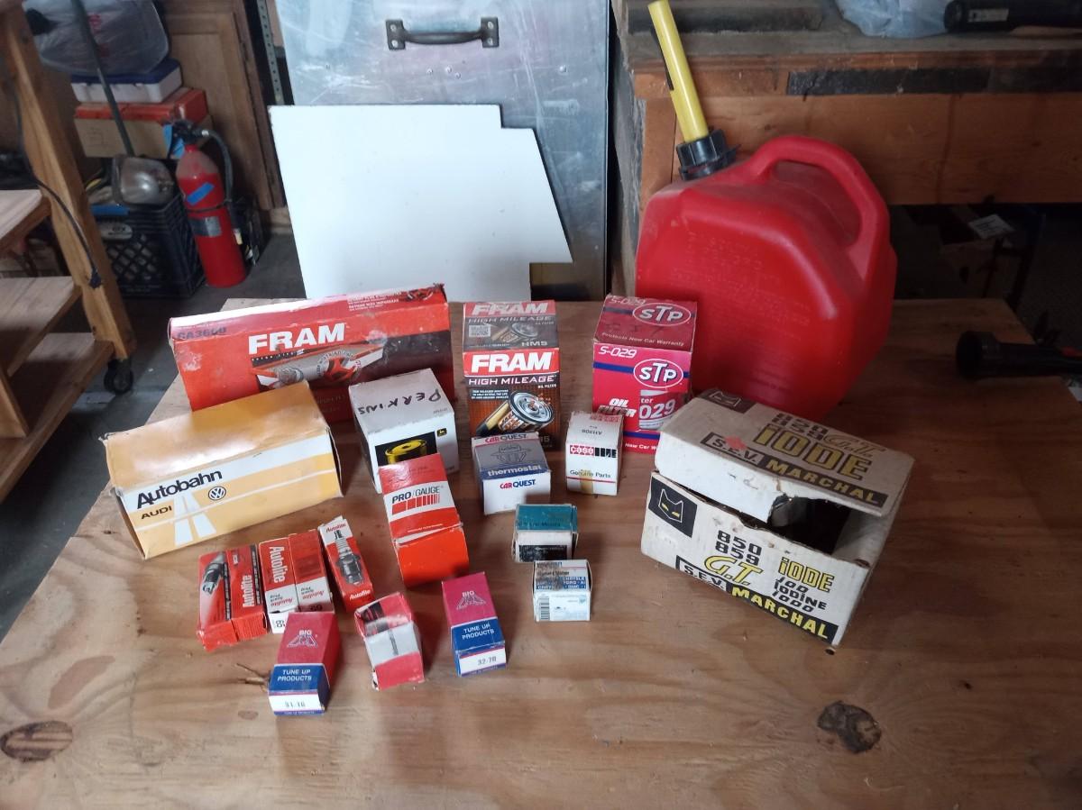 NEW AUTO PARTS, GAS CAN AND AN OLD AUTO LIGHT