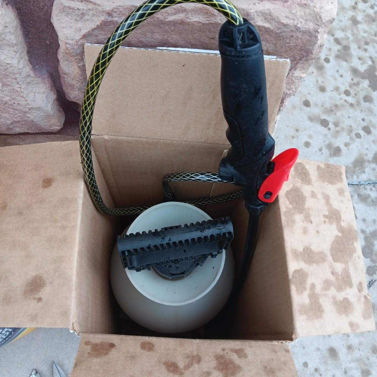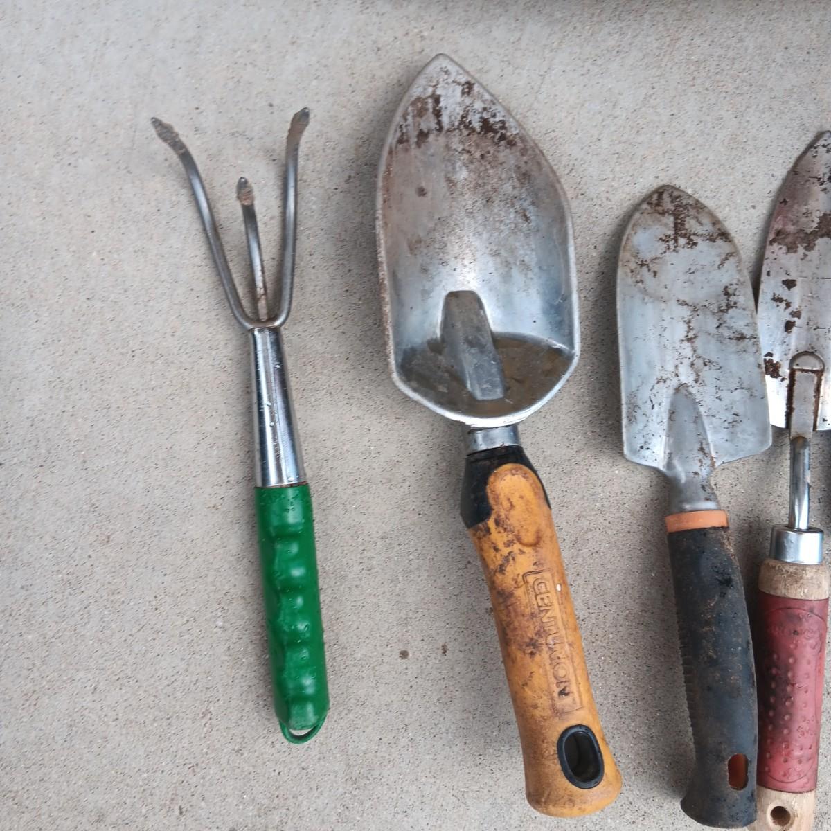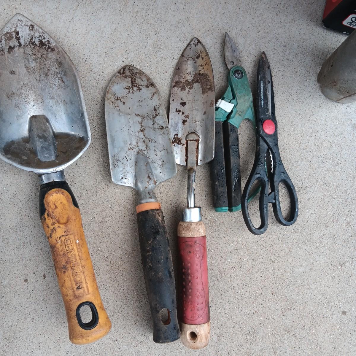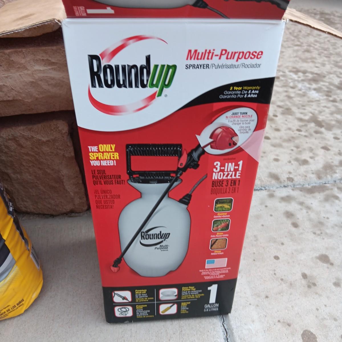 NEW BAG OF TURF BUILDER, WEED SPRAYER AND GARDEN TOOLS