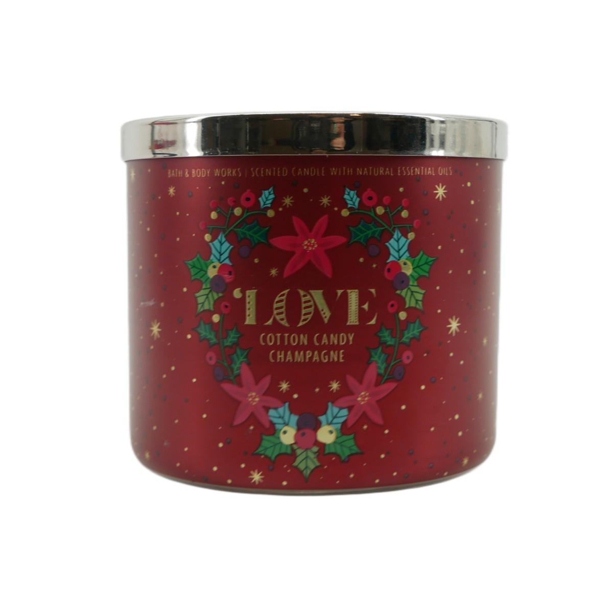 NEW Bath & Body Works Love Cotton Candy Champagne 3-Wick Candle