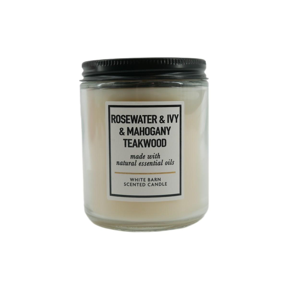 New, Bath & Body Works Rosewater & Ivy & Mahogany Teakwood Single Wick Candle. Fragrance notes: rich mahogany, black teakwood, and soft rose petals.