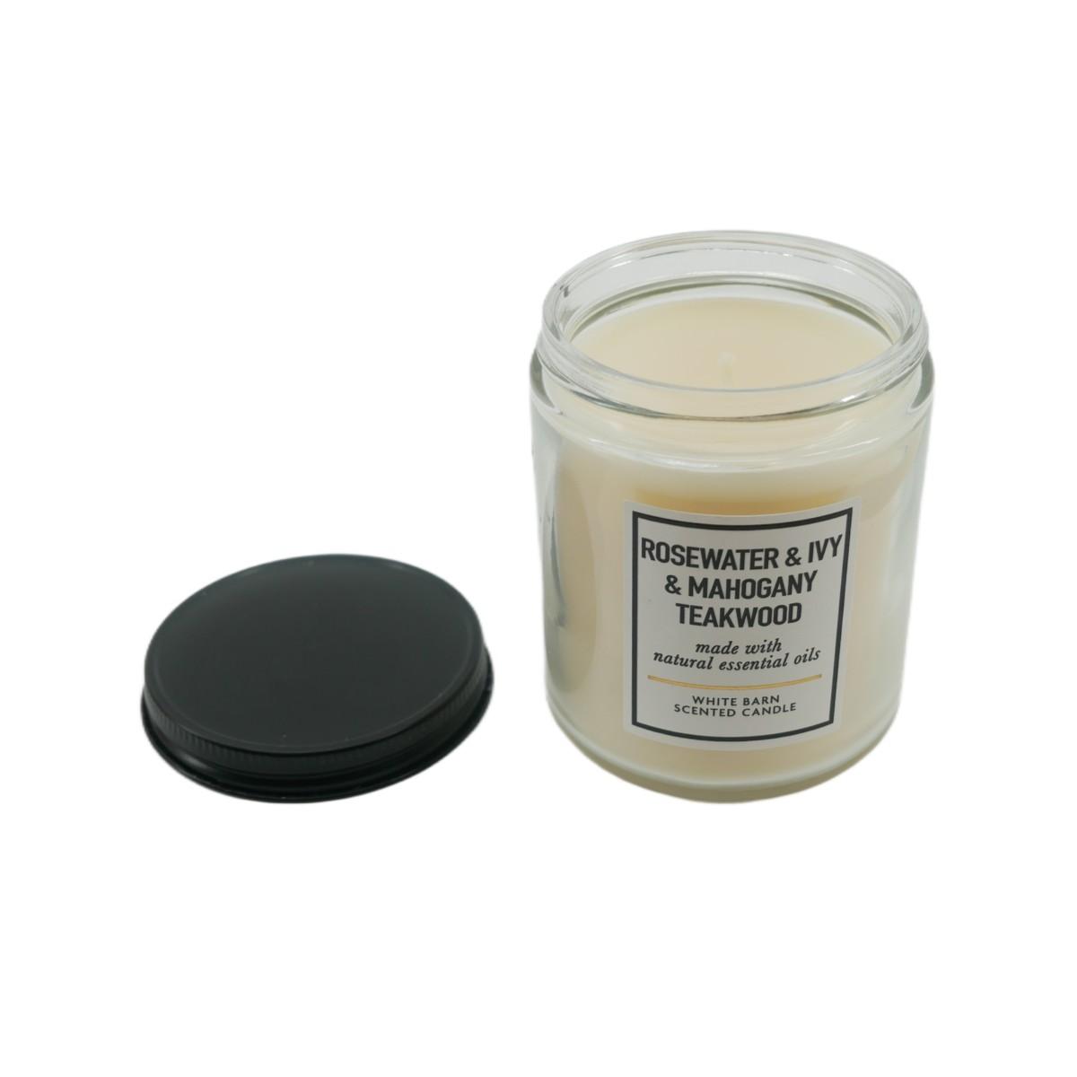 New, Bath & Body Works Rosewater & Ivy & Mahogany Teakwood Single Wick Candle. Fragrance notes: rich mahogany, black teakwood, and soft rose petals.