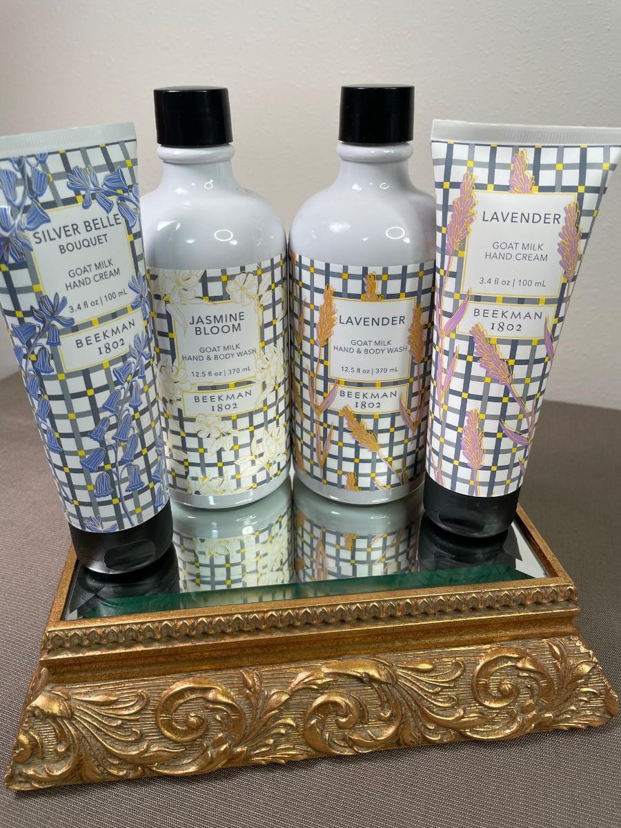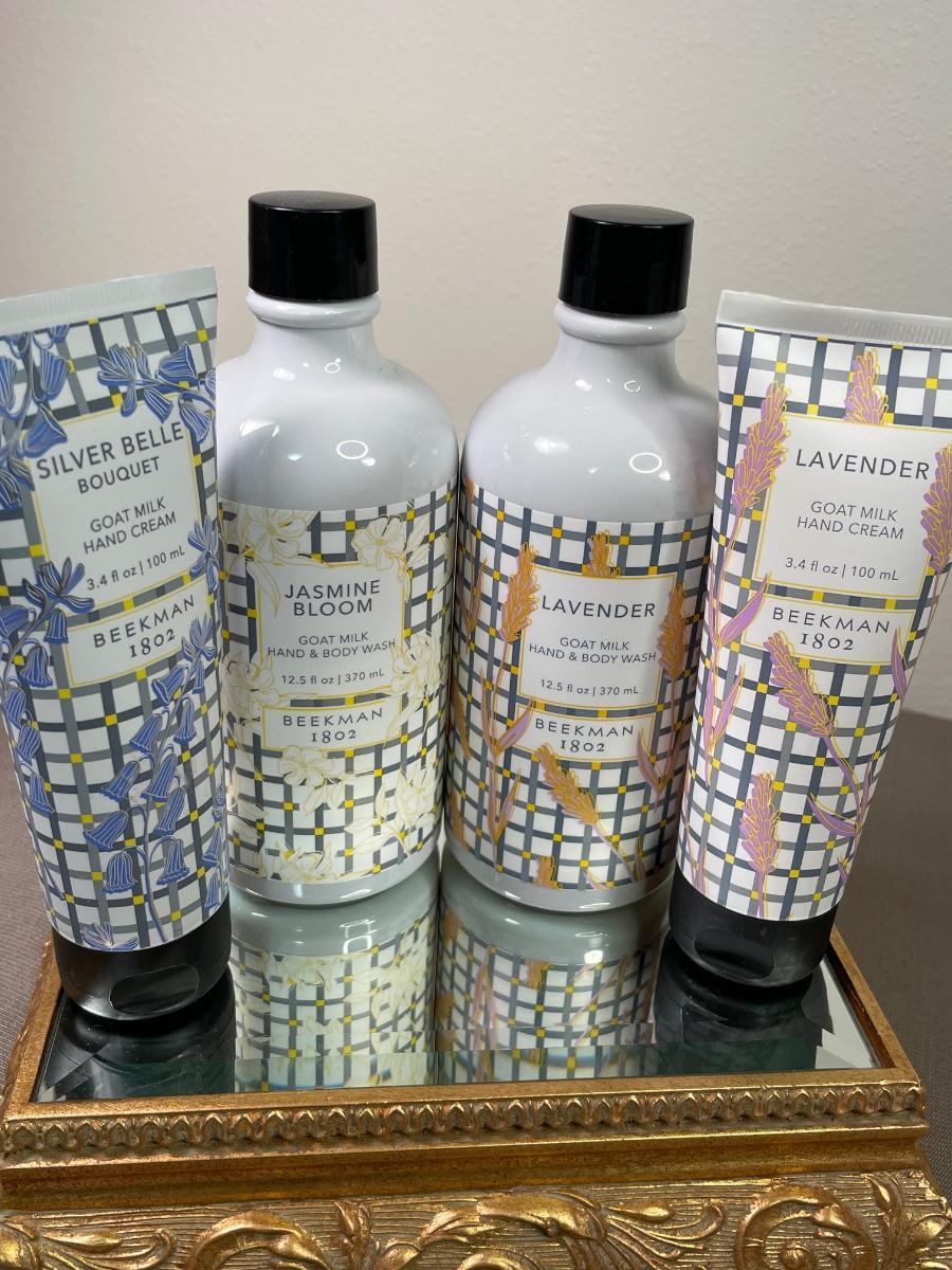 4 piece set. New and sealed. GOAT milk hand lotions and hand & body wash. See pics for scents.