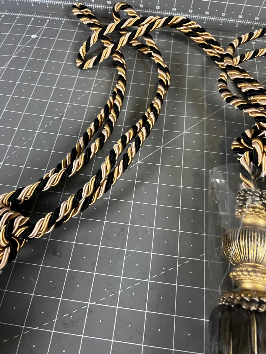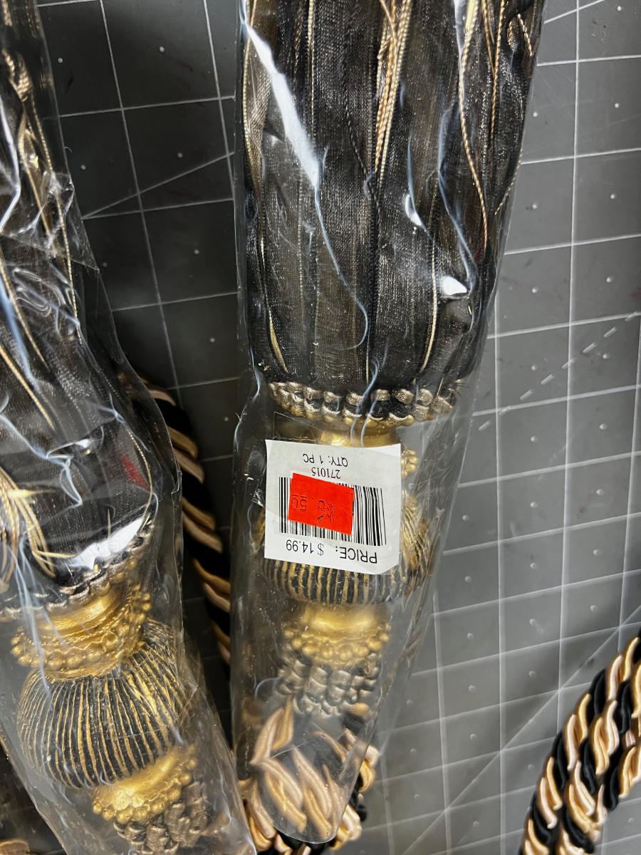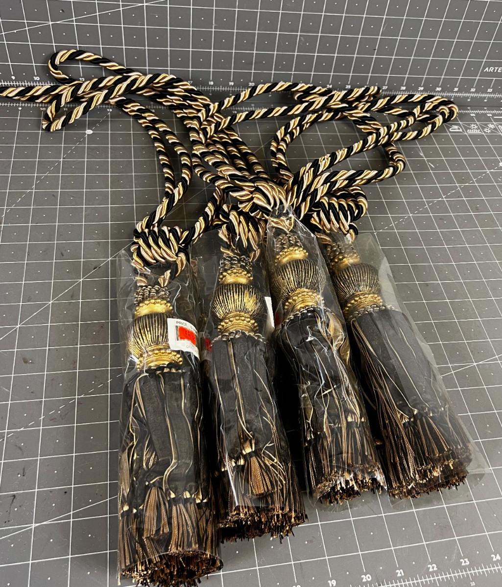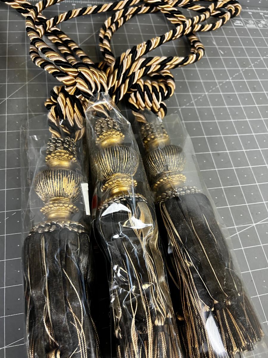 NEW Black & Gold Drapery Tassel Ropes (4)