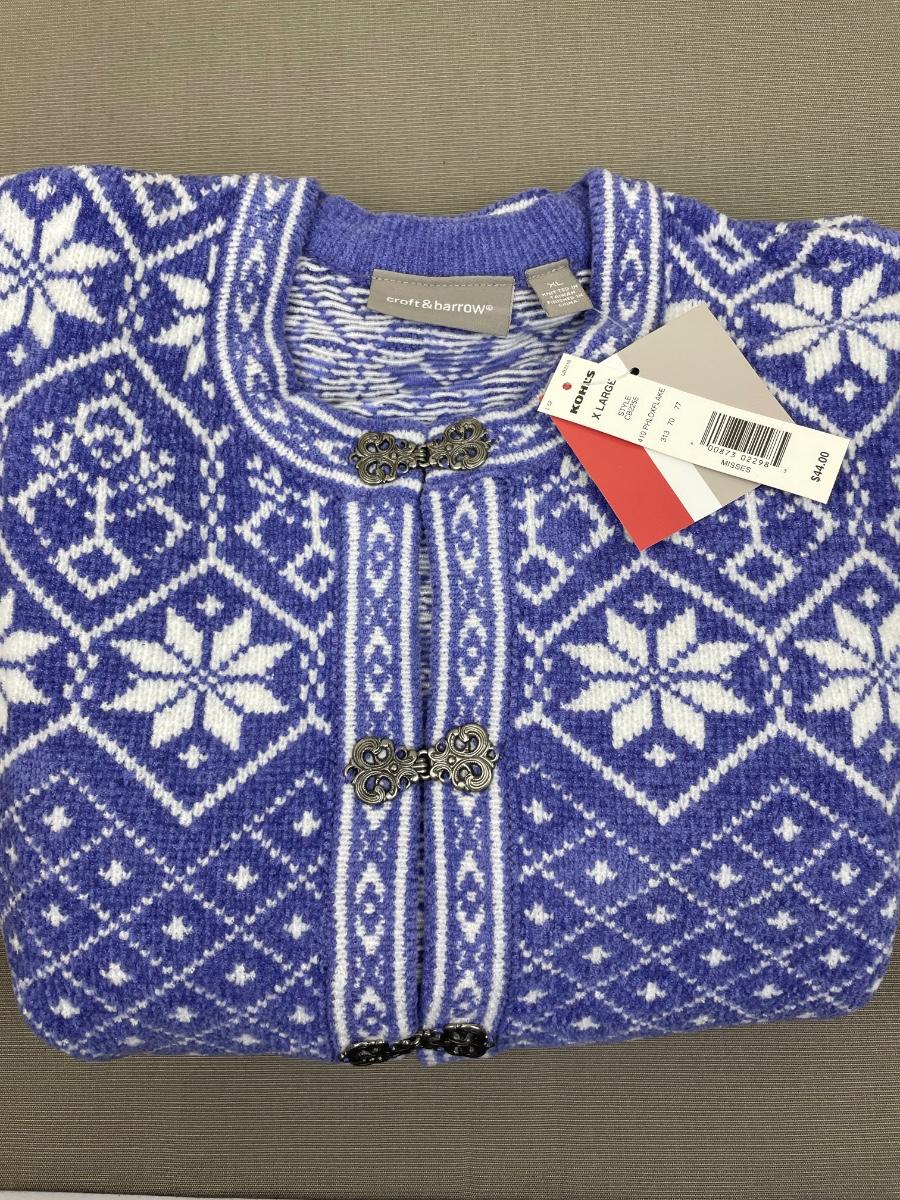 New Blue/White Clip front Sweater Size XL