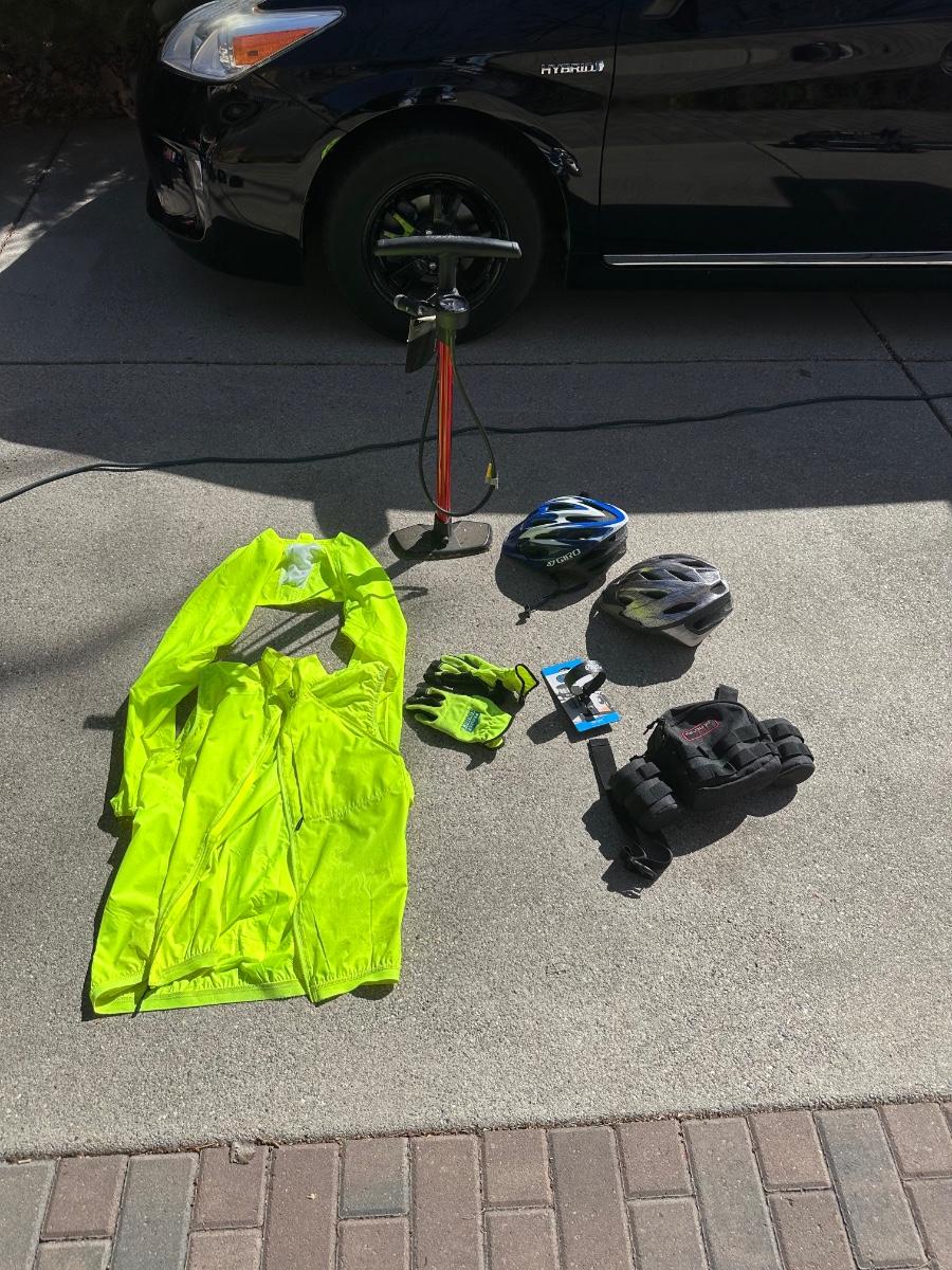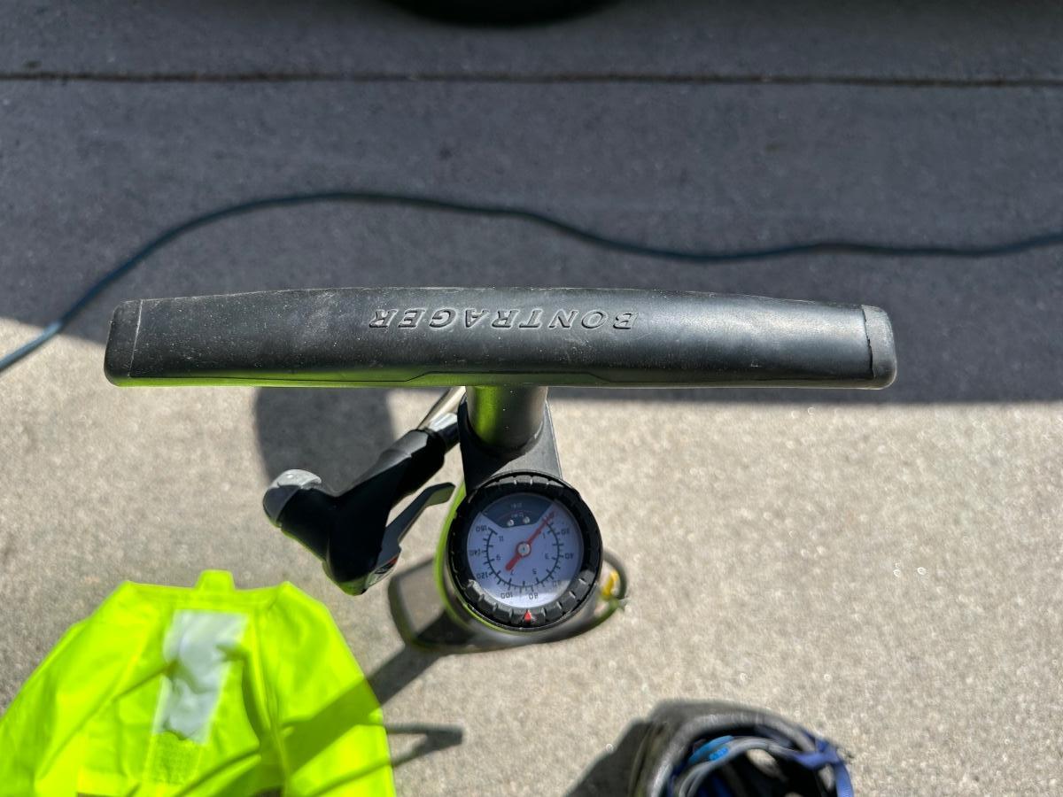 NEW BONTRAGER TIRE PUMP, 2 HELMETS, FLUORESCENT SAFETY VEST AND MORE