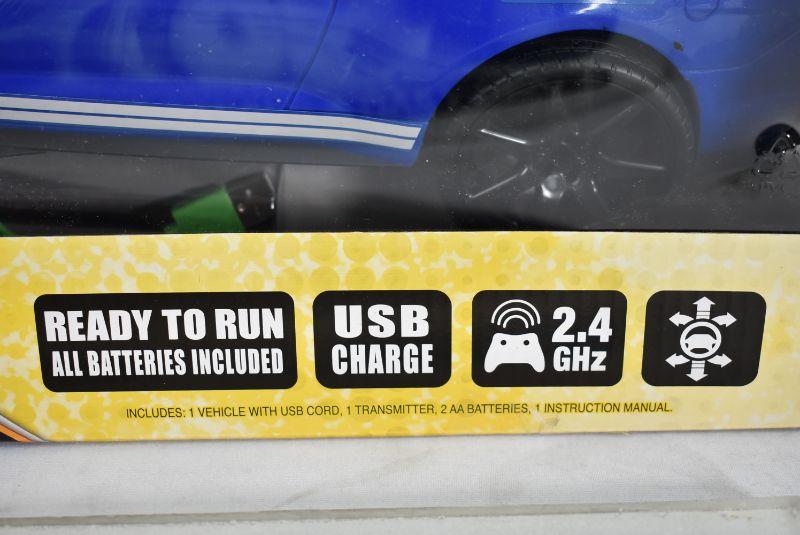 New Bright 1:12 (14.5") RC Cars Ford Mustang GT500, 2.4 GHz USB - Blue. Box Damaged, $30 Retail - New
