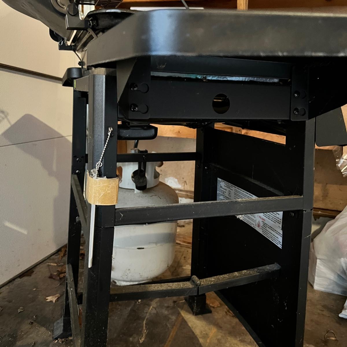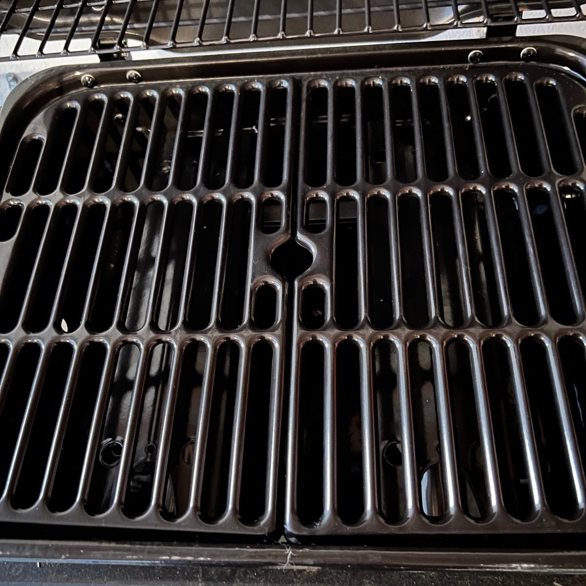 This grill features 24,000 BTUs total and the porcelain-coated steel cooking grates create perfect sear marks every time. The propane-fueled grill comes complete with two large side tables that provide plenty of space for platters and condiments. Featuring an integrated ignition, stainless steel burners, and 446 sq. in. of cooking space, this grill is everything you need and more for a family cook-out. Stainless steel burners. Porcelain coated cooking grates. Integrated ignition. H 43.31 in, W 45.39 in, D 22.64 in. NOTE: PICK UP ONLY IN DUNKIRK MD.