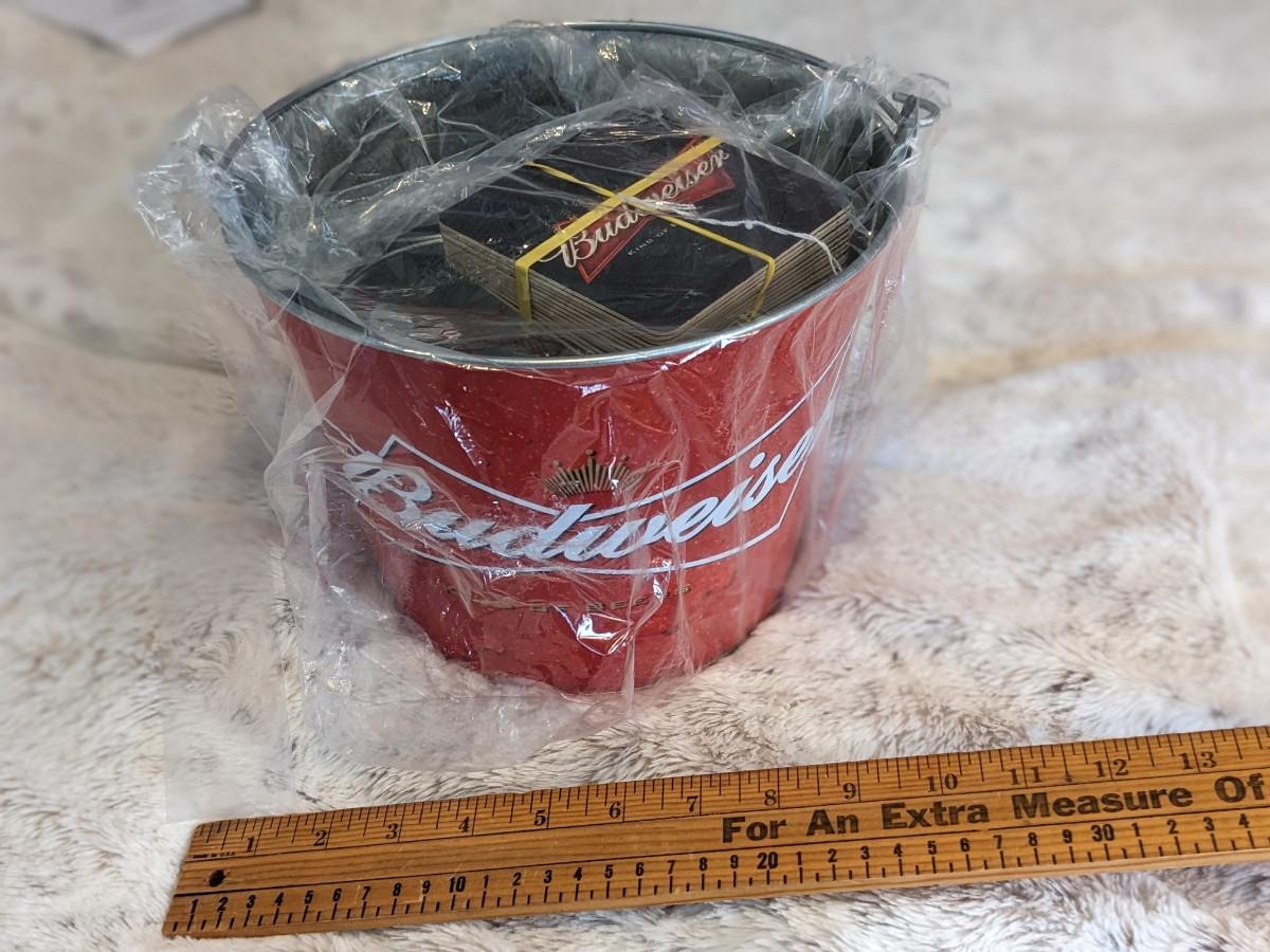 New Budweiser Set of Glasses, Bucket, and Coasters
