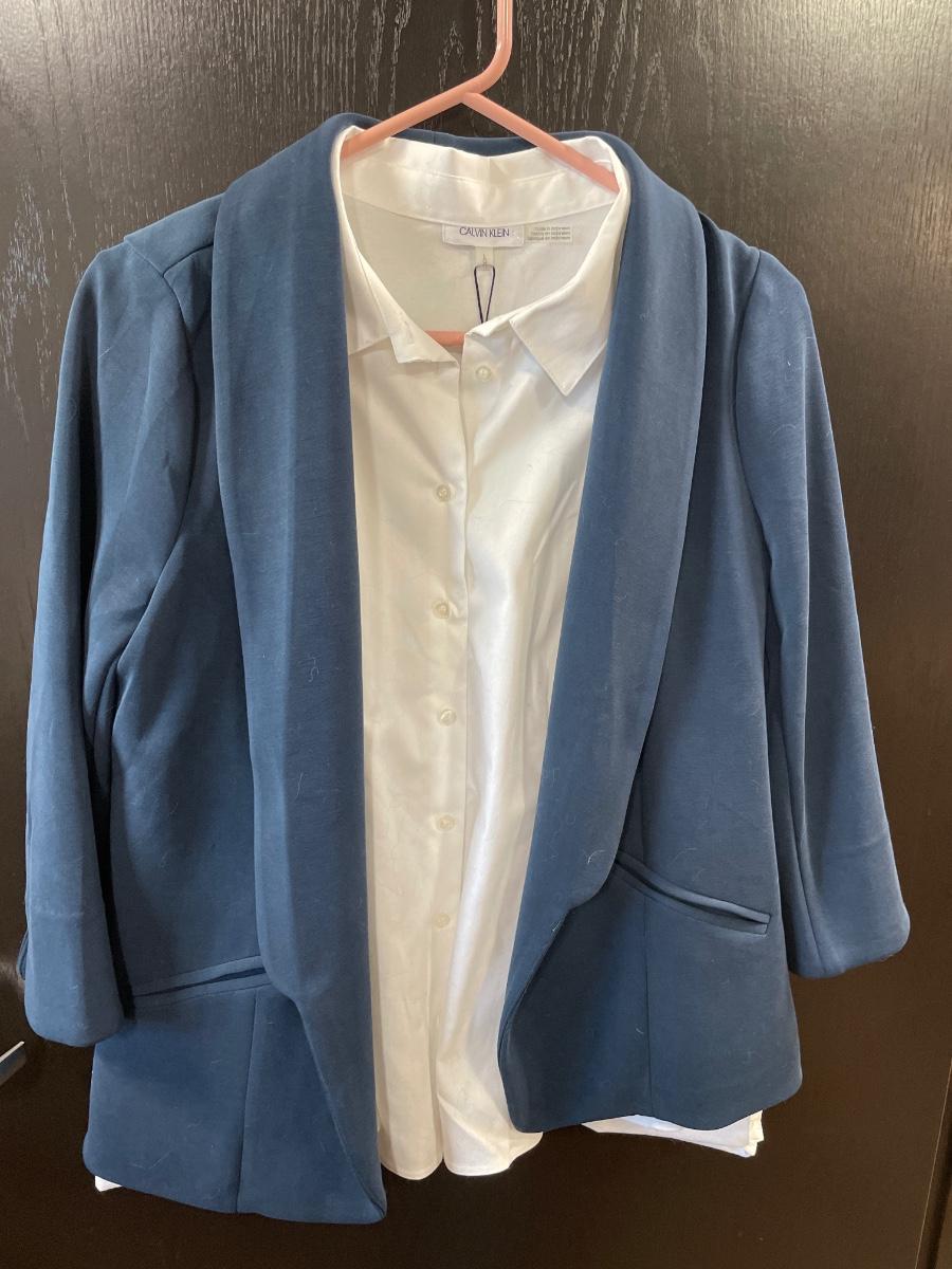 New Calvin Klein white dress shirt and Skies are Blue jacket