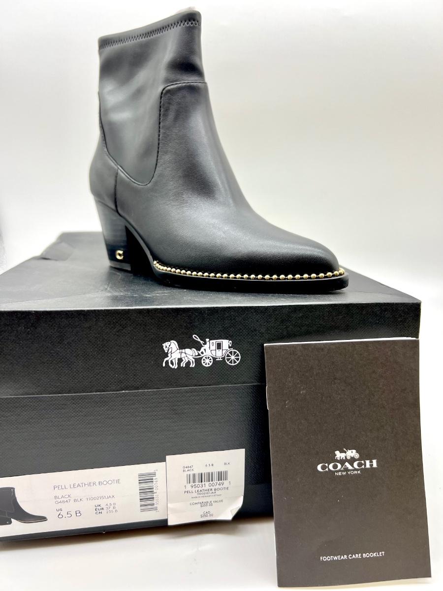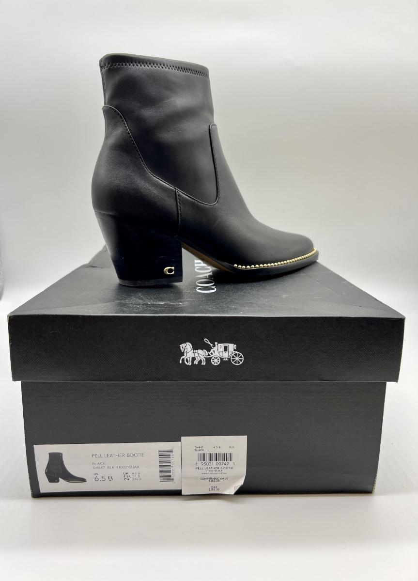 Brand new with box. COACH Black PELL LEATHER BOOTIE size ladies 6.5 B