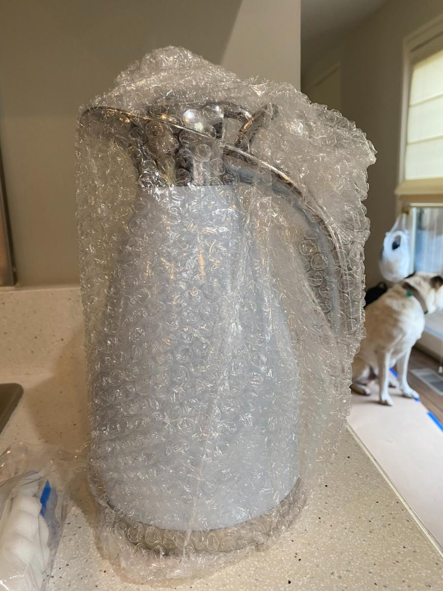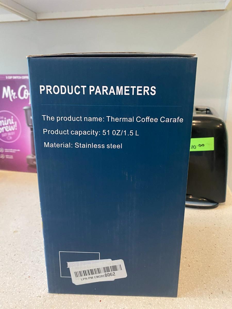 New in box item. 1.5L capacity. Beautiful white and silver. includes cleaning sponge.