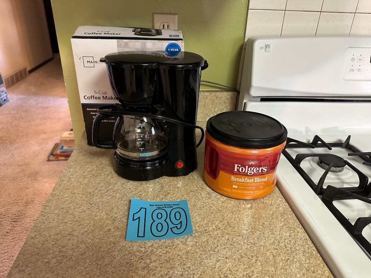 NEW COFFEE MAKER AND SEALED FOLGERS COFFEE