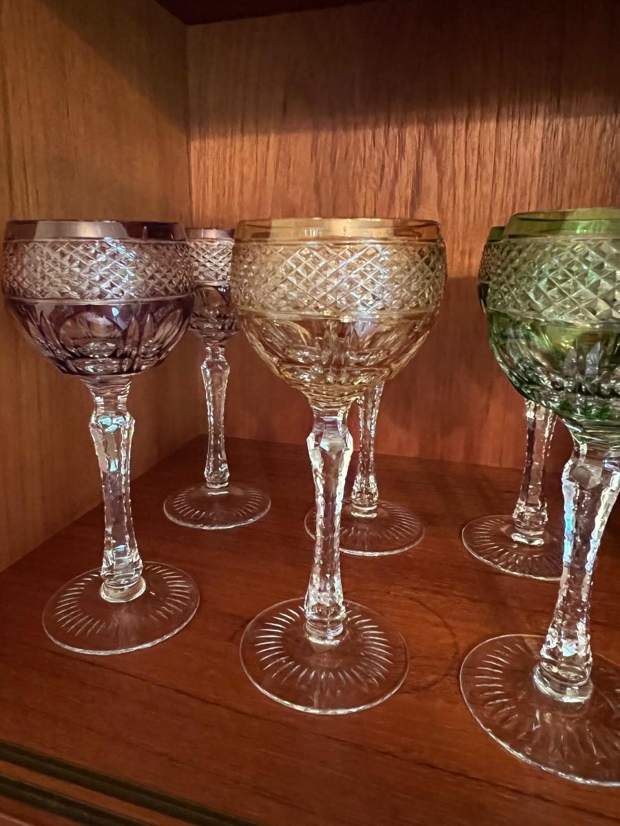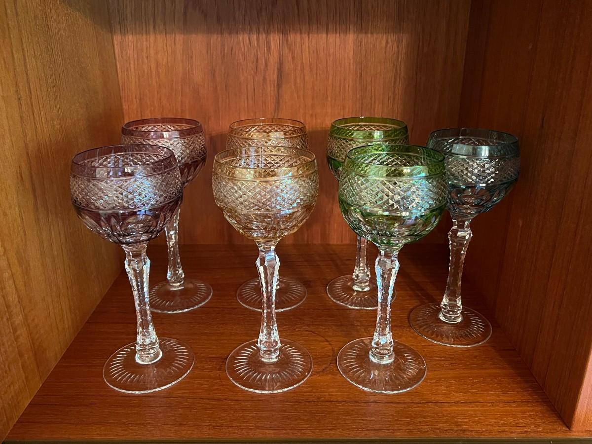 1950s Beyer Bleikristall Lead Crystal Hand Cut to Clear Hock Wine Glasses- Set of 7