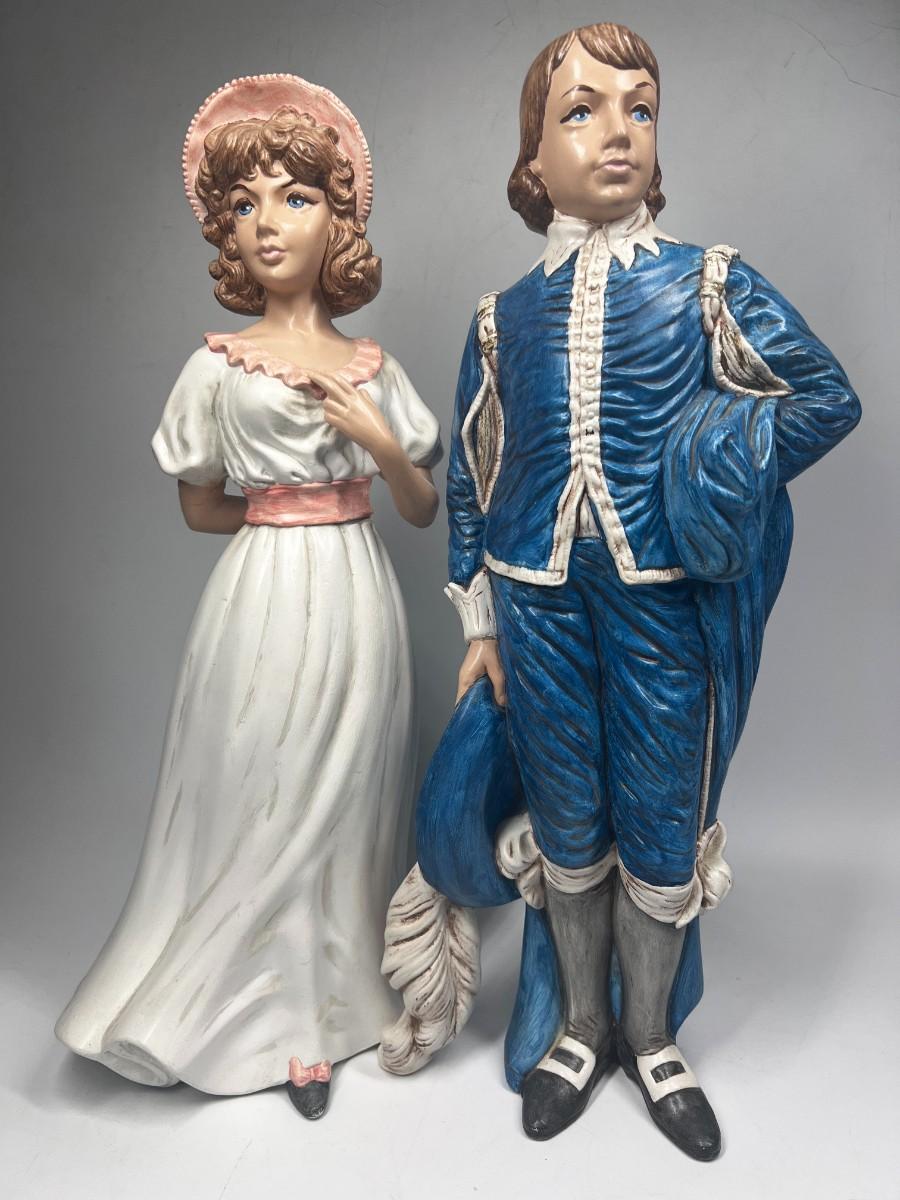 Blue Boy & Pinkie Figurine Vintage Ceramic Hand Painted Artist Signed Holland Mold Thomas Lawrence