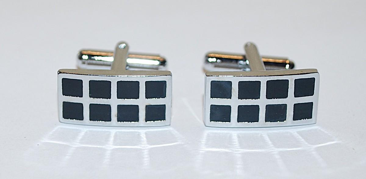 NEW CUFFLINKS SET with 8 Black Squares on a Rectangle Shape on a Silver Tone Setting