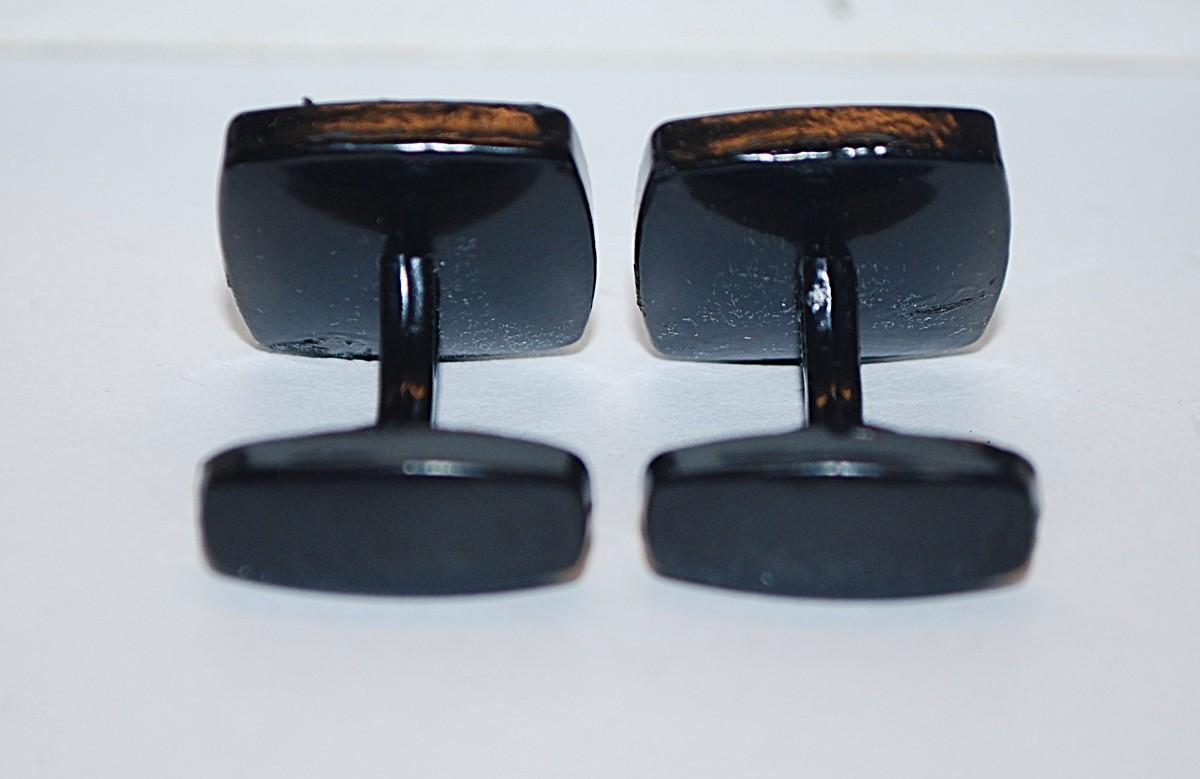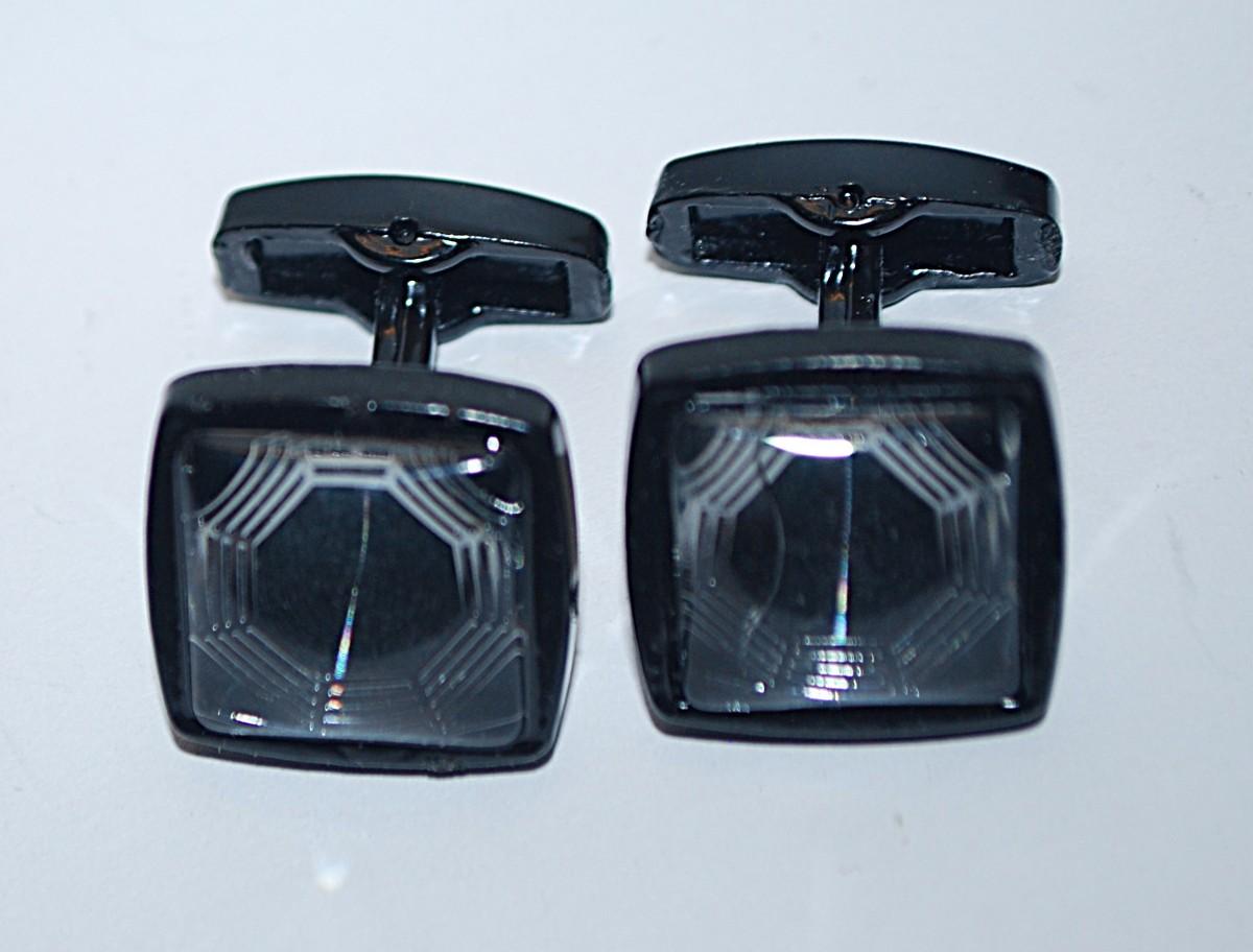 NEW CUFFLINKS SET with a SQUARE Shape & 5 Line Octagon Design on Black Center on an All BLACK Tone Setting