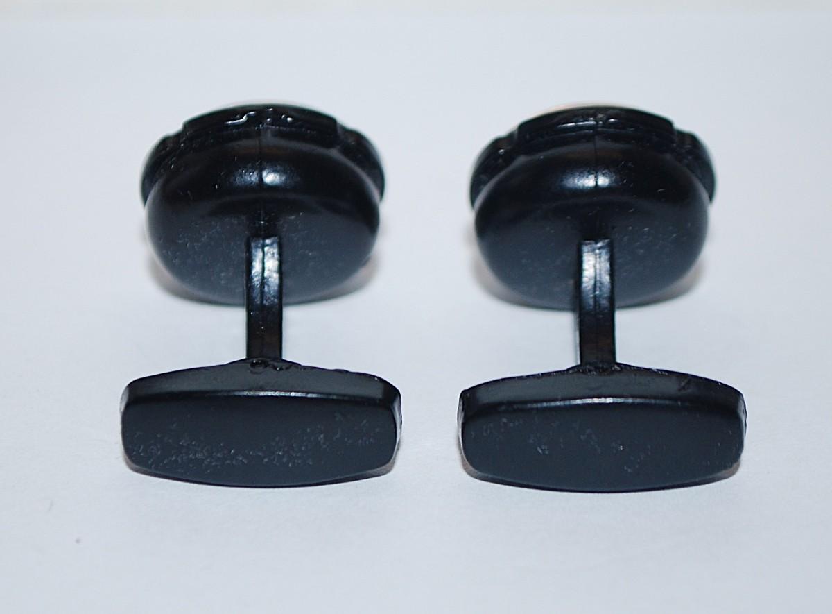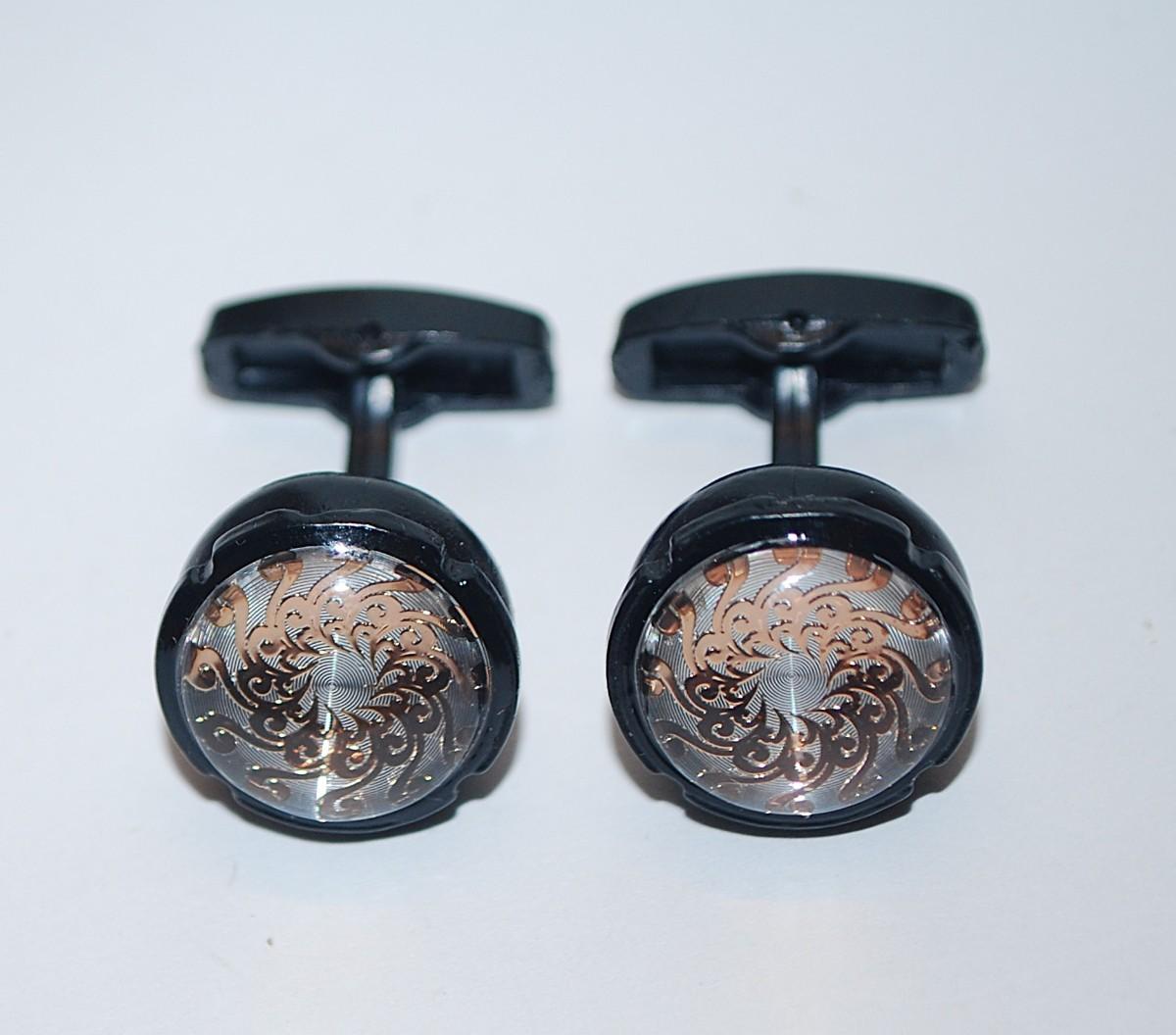 NEW CUFFLINKS SET with a ROUND Shape & Rose Gold-Tone Circle Design on Clear Center & with an All BLACK Tone Setting