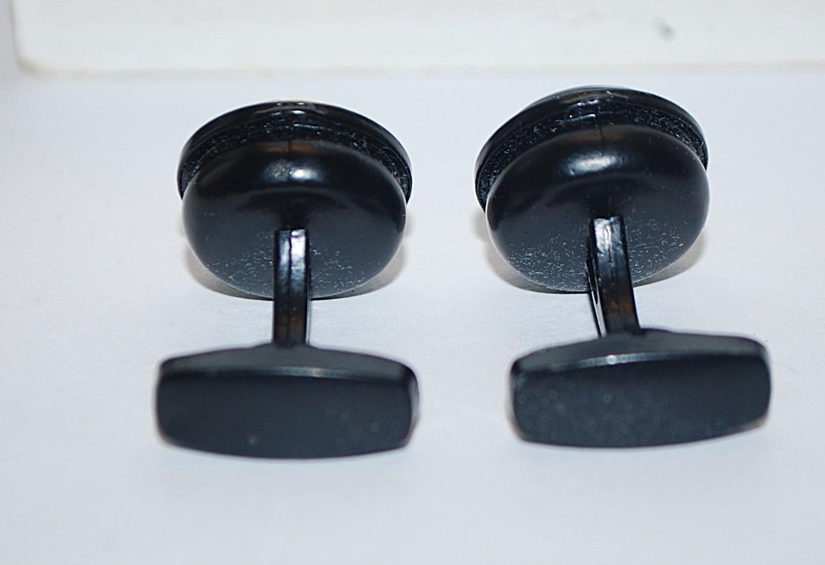 NEW CUFFLINKS SET with a ROUND Shape & Dark Gray/Blue Center + Gold Tone Surround & an All BLACK Tone Setting