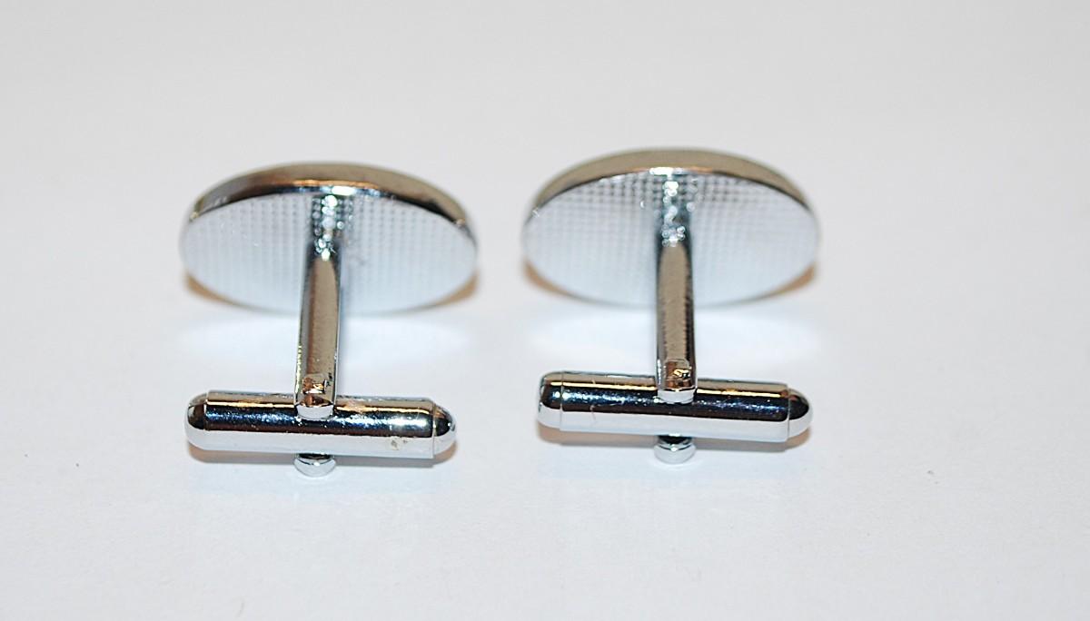 NEW CUFFLINKS SET with Blue Oval Stone & Gold Tone Surround on a Silver Tone Setting