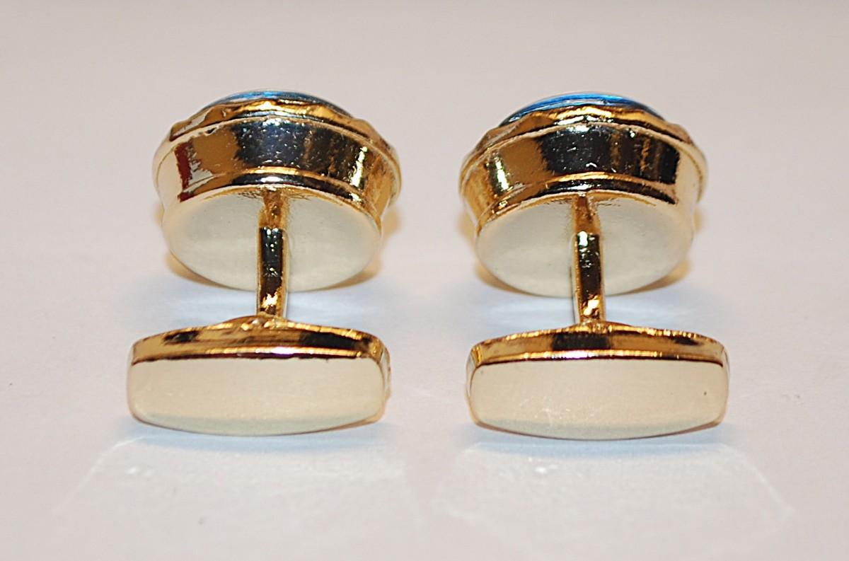 NEW CUFFLINKS SET with Deep Blue ROUND Stone Center & Gold Tone Surround on a Gold Tone Setting