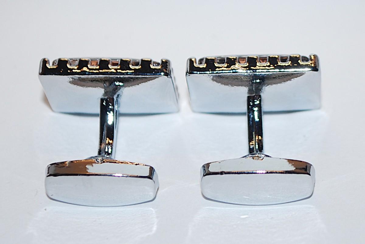 NEW CUFFLINKS SET with Muted Orange Glass Stone RECTANGLE & Silver "Nubs" Surround on a Silver Tone Setting