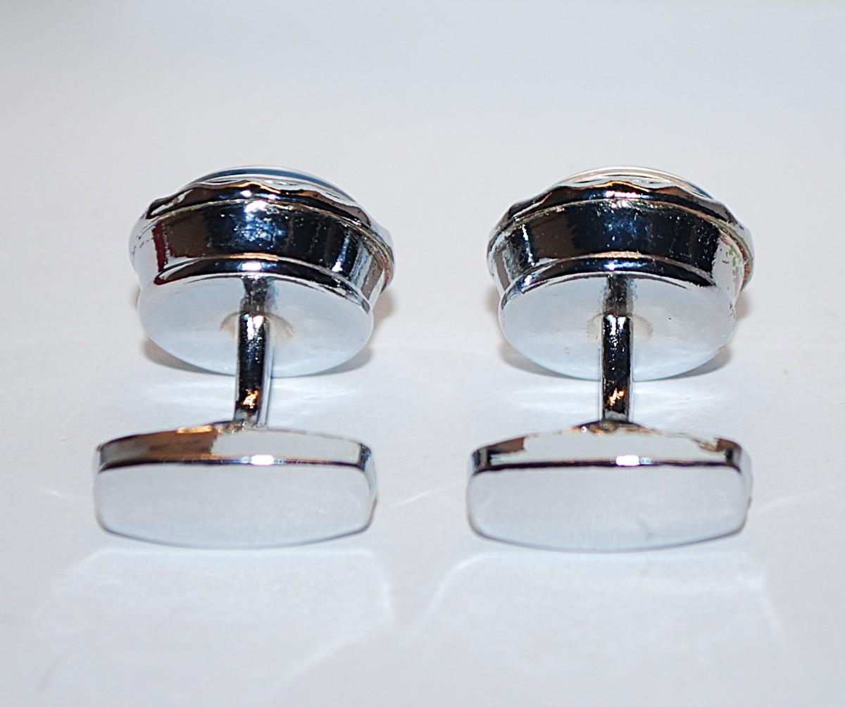 NEW CUFFLINKS SET with ROUND Shape and Blue Center Stone and Both Silver + Brass-Tone Surround on a Silver Tone Setting