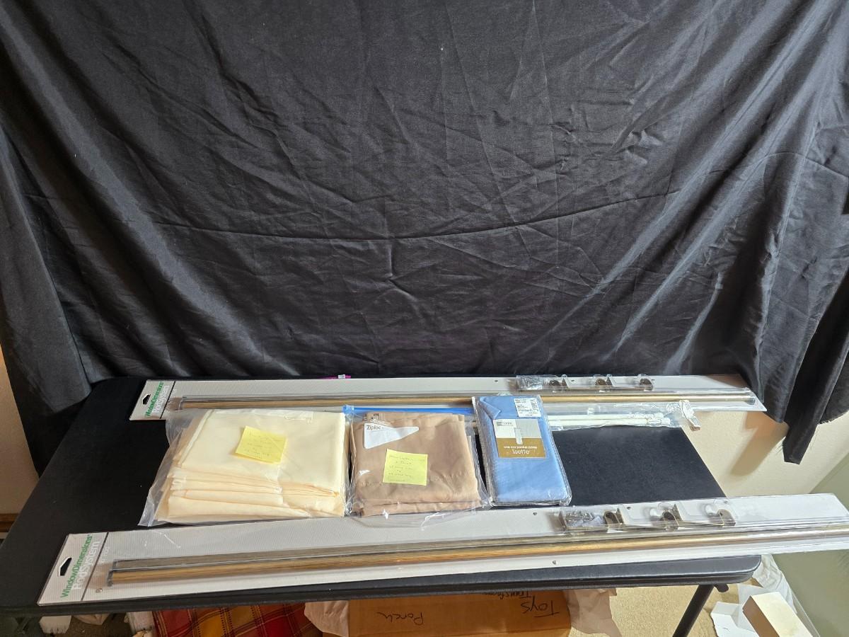 New curtain rods with sheer curtain panels and a new one rod pocket panel