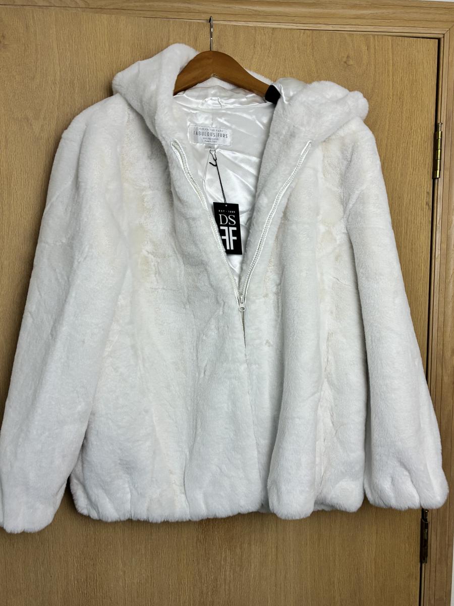 New Donna Salyers Fabulous Faux Fur Coat Cream Zip with Hood 2X