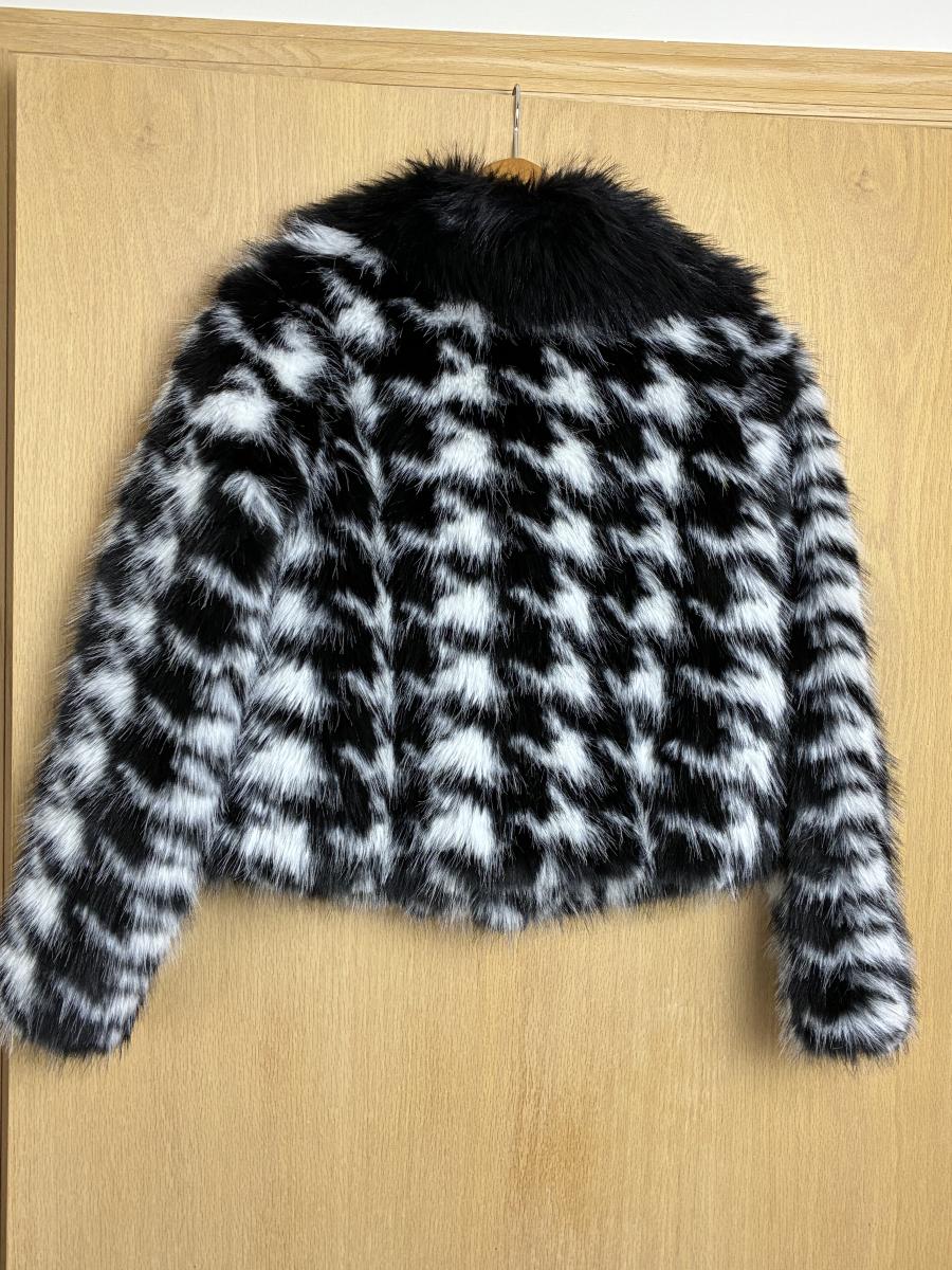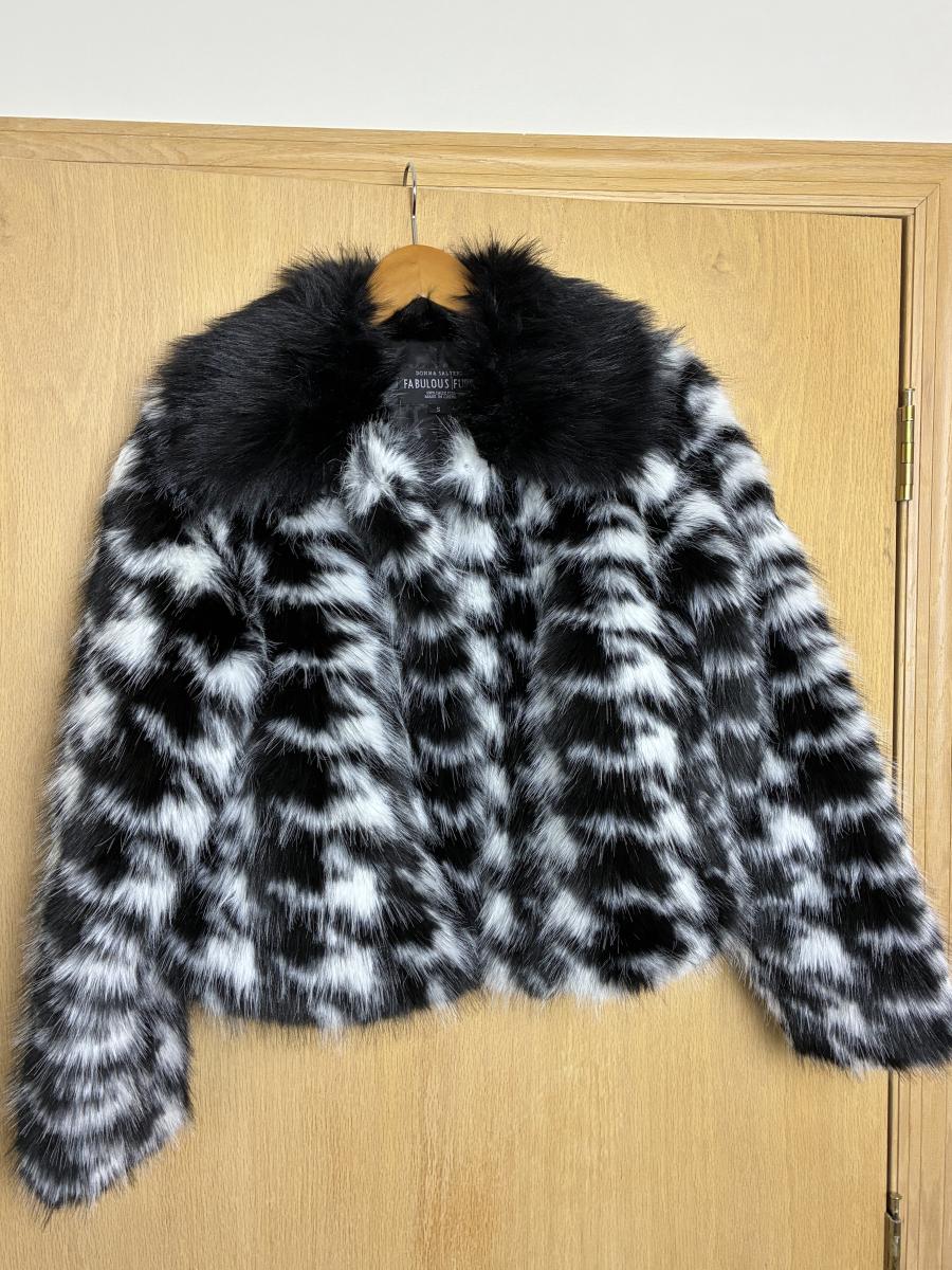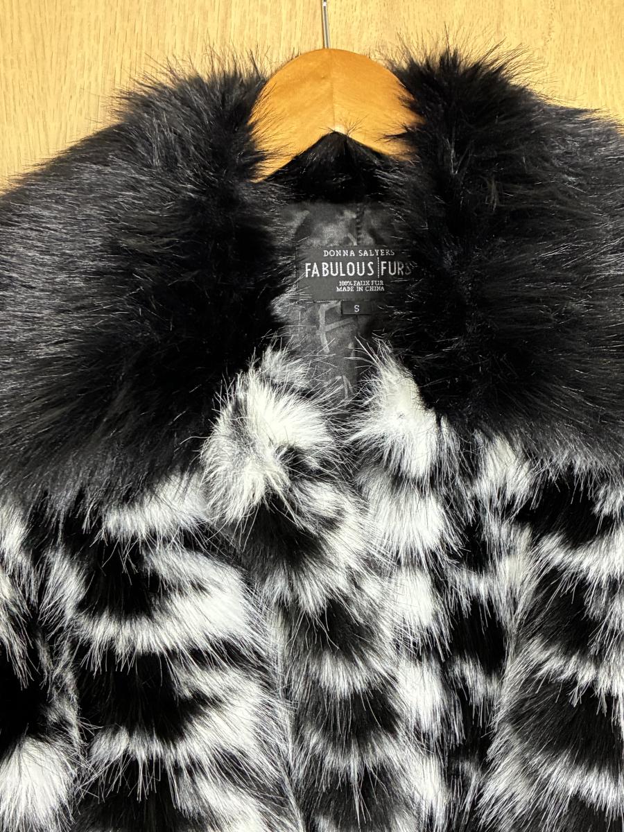New Donna Salyers Fabulous Faux Fur Coat Short Black and White Small