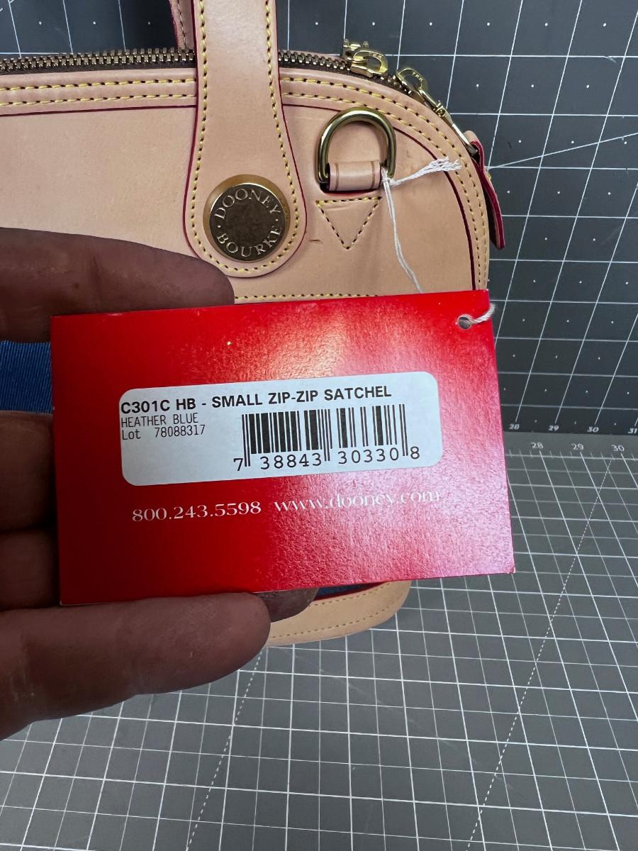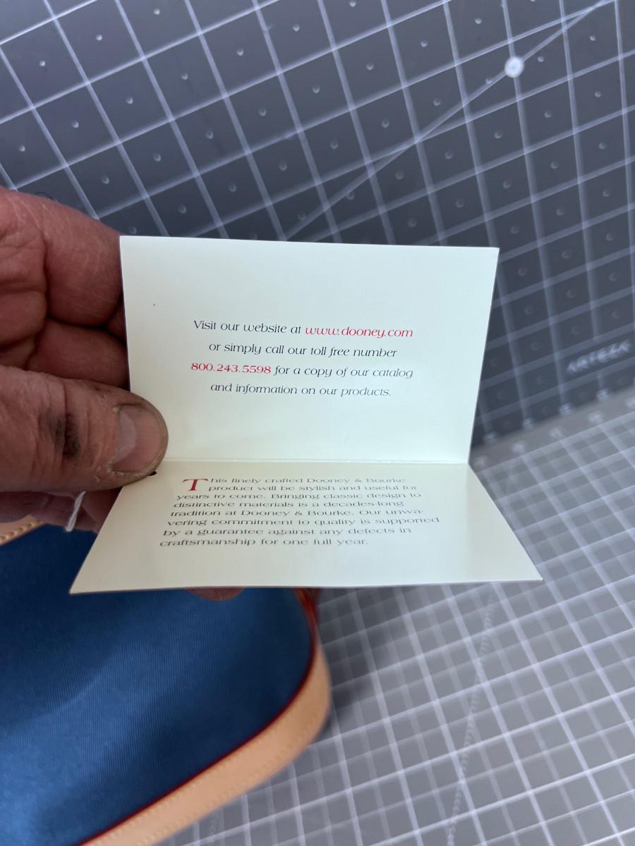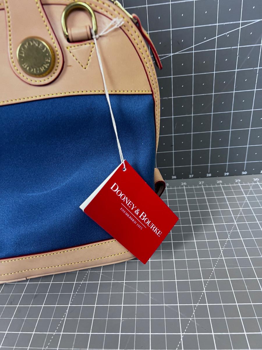 Heather Blue and Natural Leather. NEW with Shoulder Strap and Paperwork inside the bag.