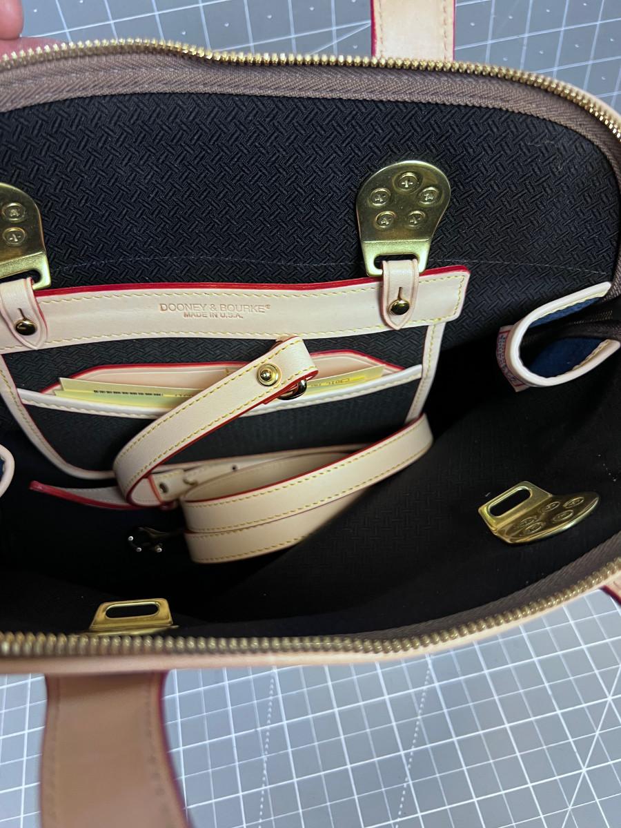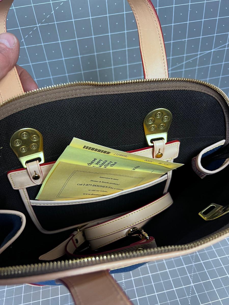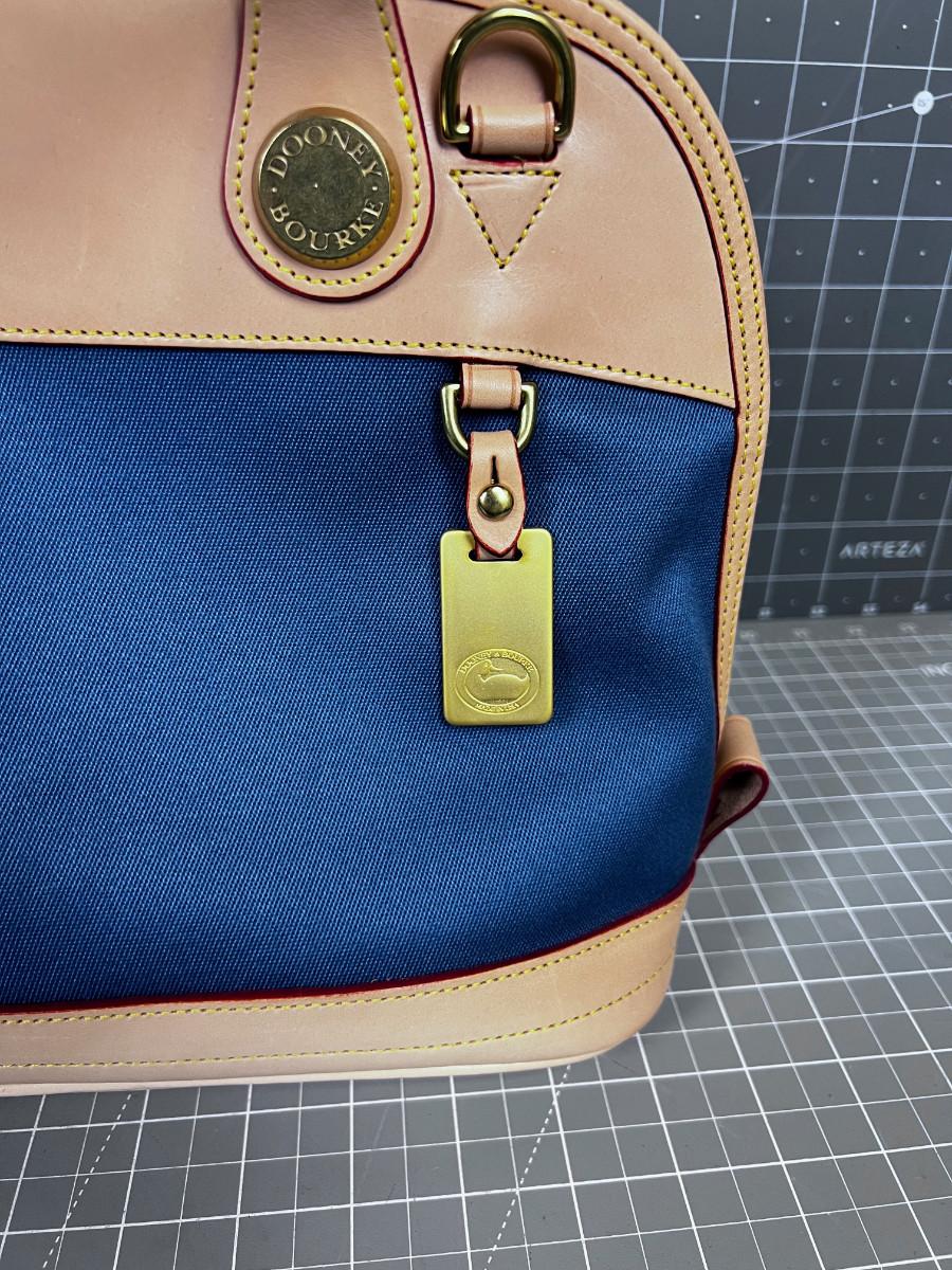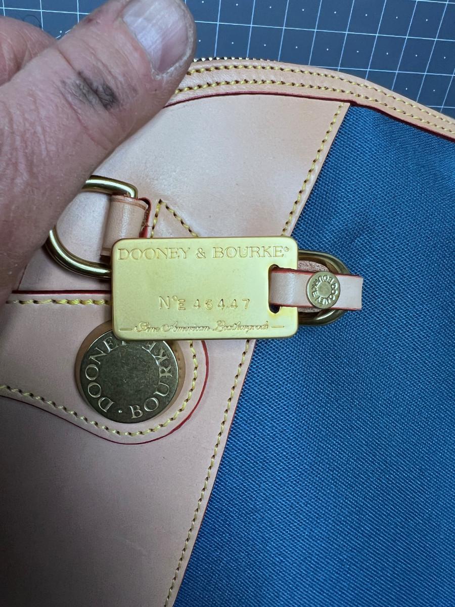Heather Blue and Natural Leather. NEW with Shoulder Strap and Paperwork inside the bag.