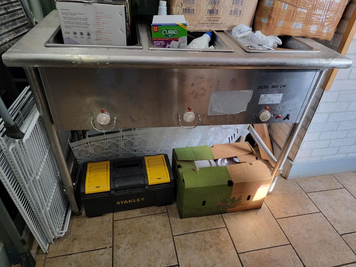 New Dukes Steamtable, never used, 3 holes, model DCAS13ESW, 48" X 26", retails over. $1000