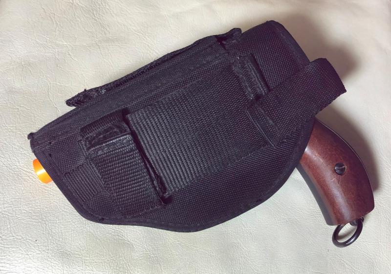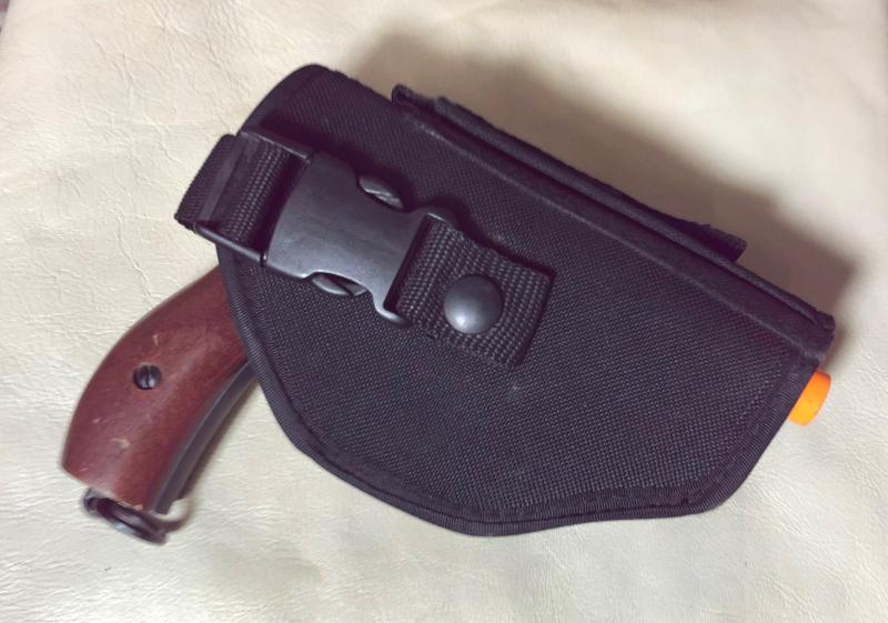 Here is a Model B22 blank firing revolver from the New England Firearms Company, Gardner, Mass...Blued steel with hard walnut handles...9 shot 22 Short Blank...Double action...When found, this starter pistol hadn't been cleaned and two shells were lodged in the cylinder..some exterior markings from removal attempt...I had a gunsmith refurbish it...Working well now...Includes a soft holster...