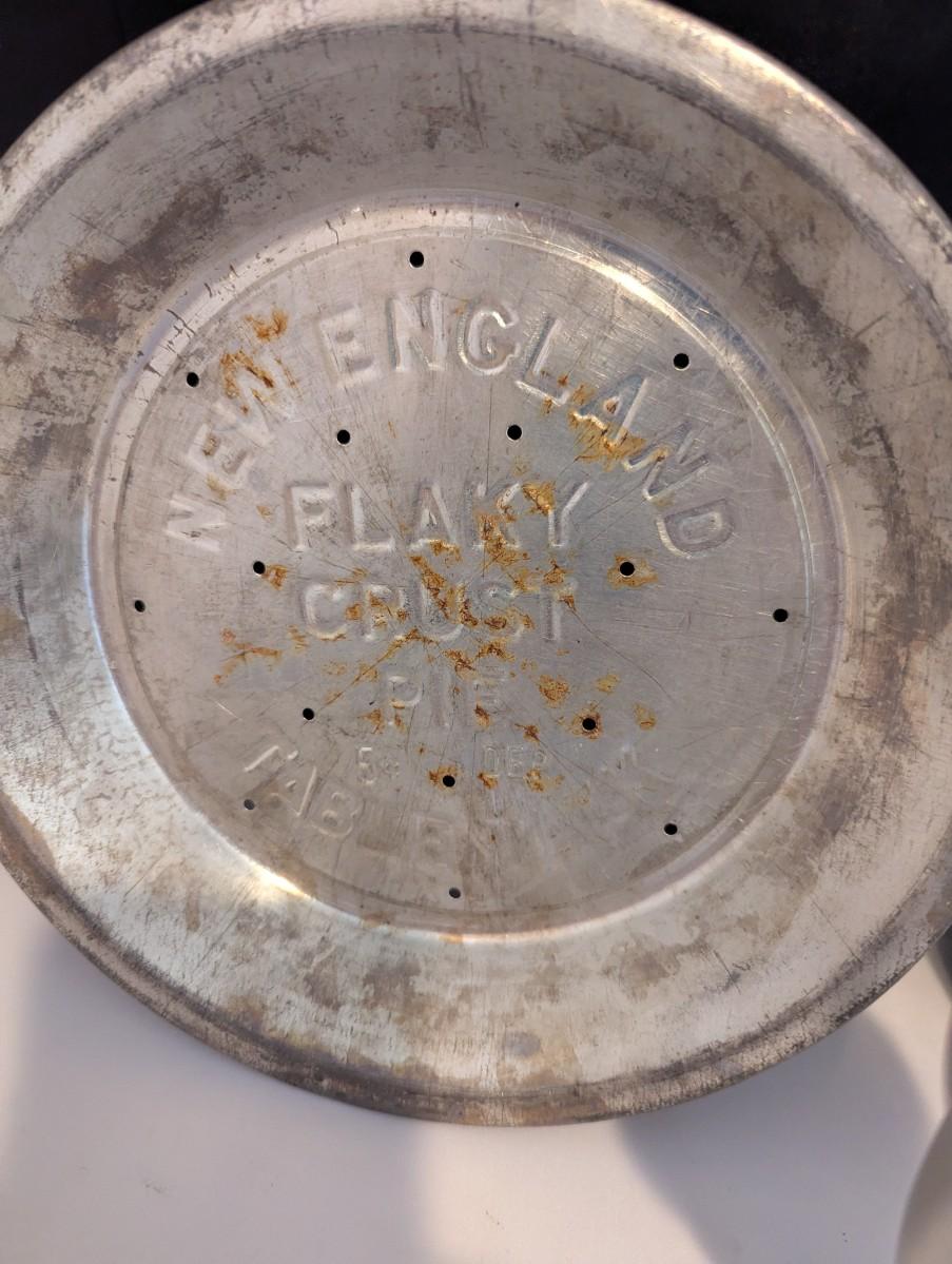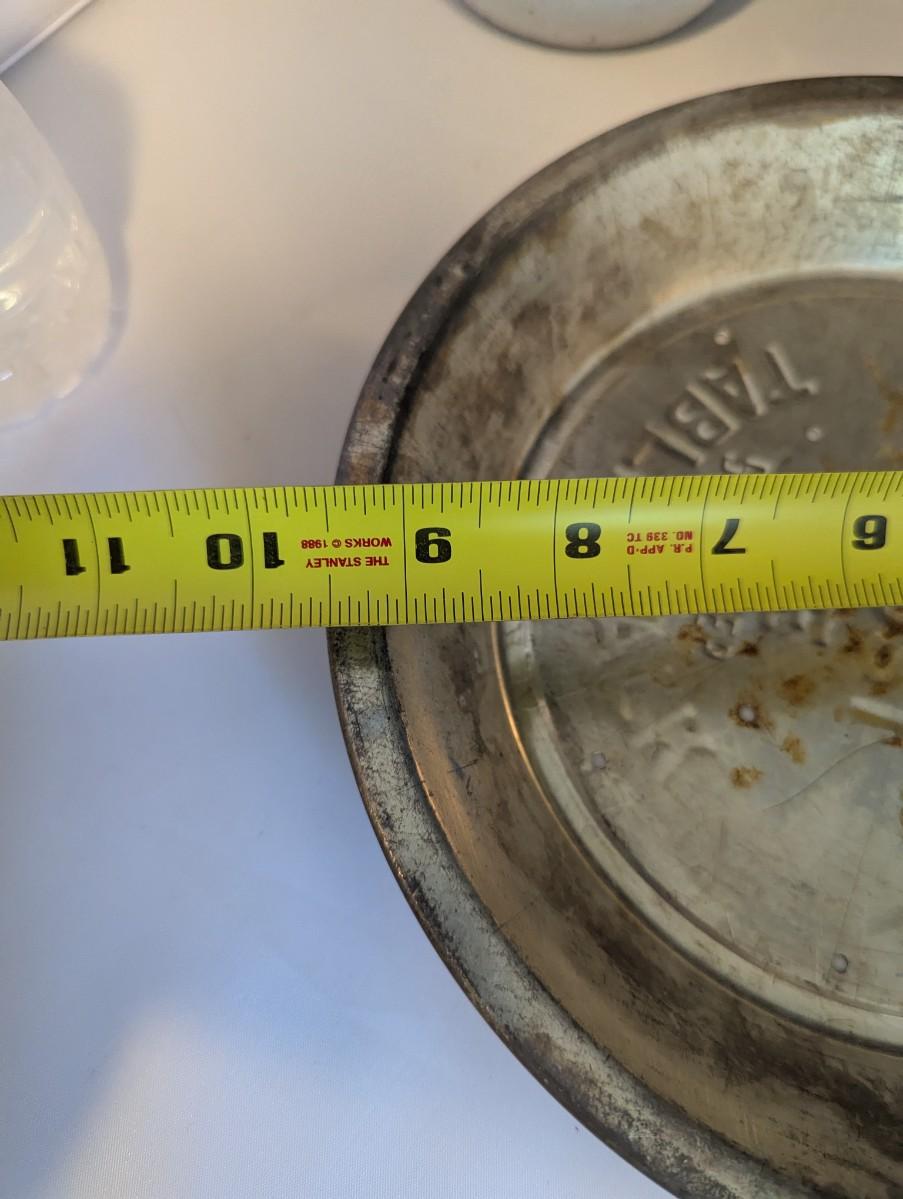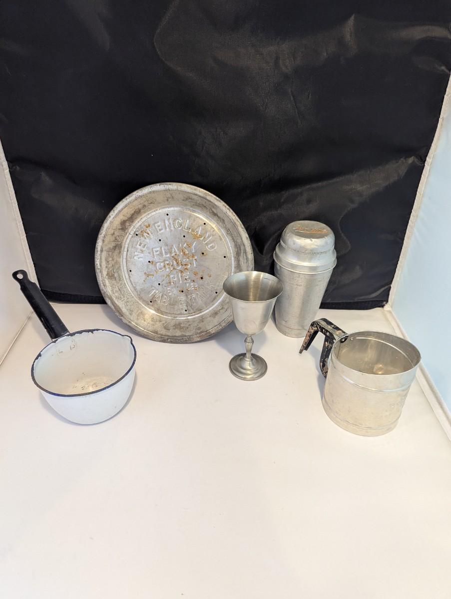 New England Flaky Pie Crust Plate Ovaltine Shaker Lun Pewter K.E.R Sweden Enamel Pot #8 (DR)