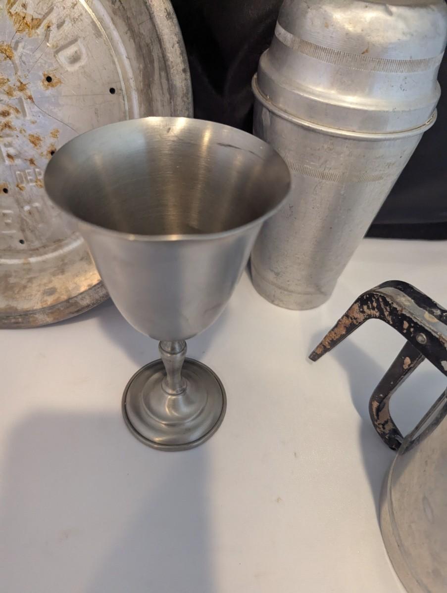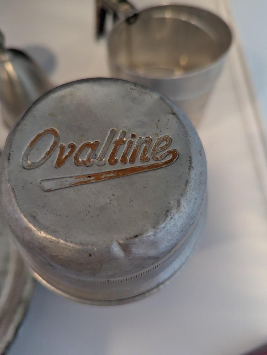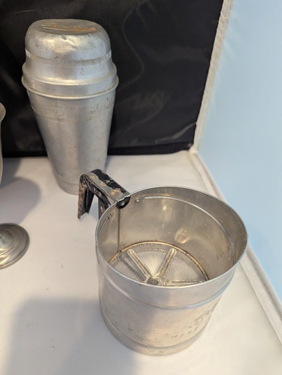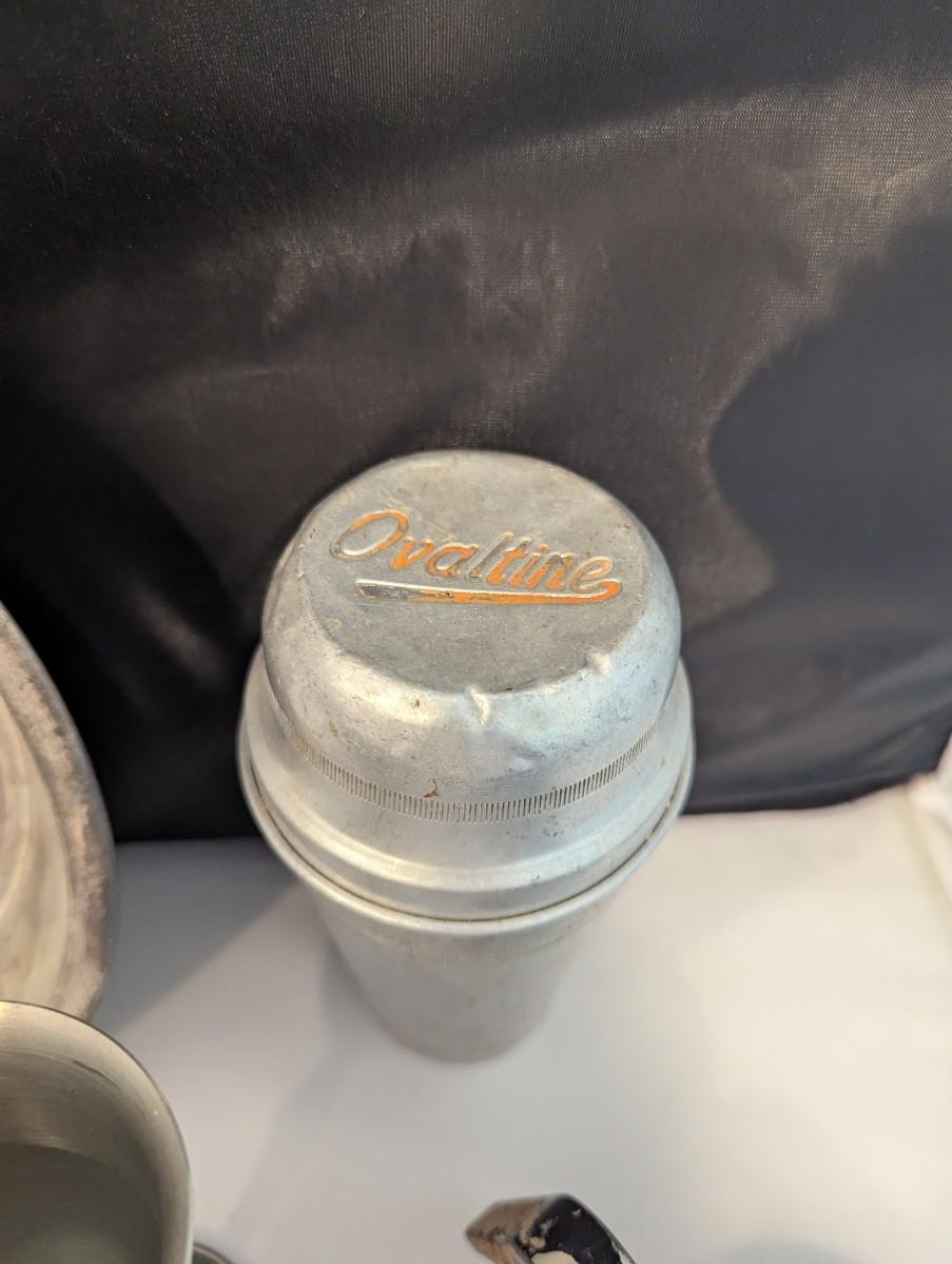 New England Flaky Pie Crust Plate Ovaltine Shaker Lun Pewter K.E.R Sweden Enamel Pot #8 (DR)