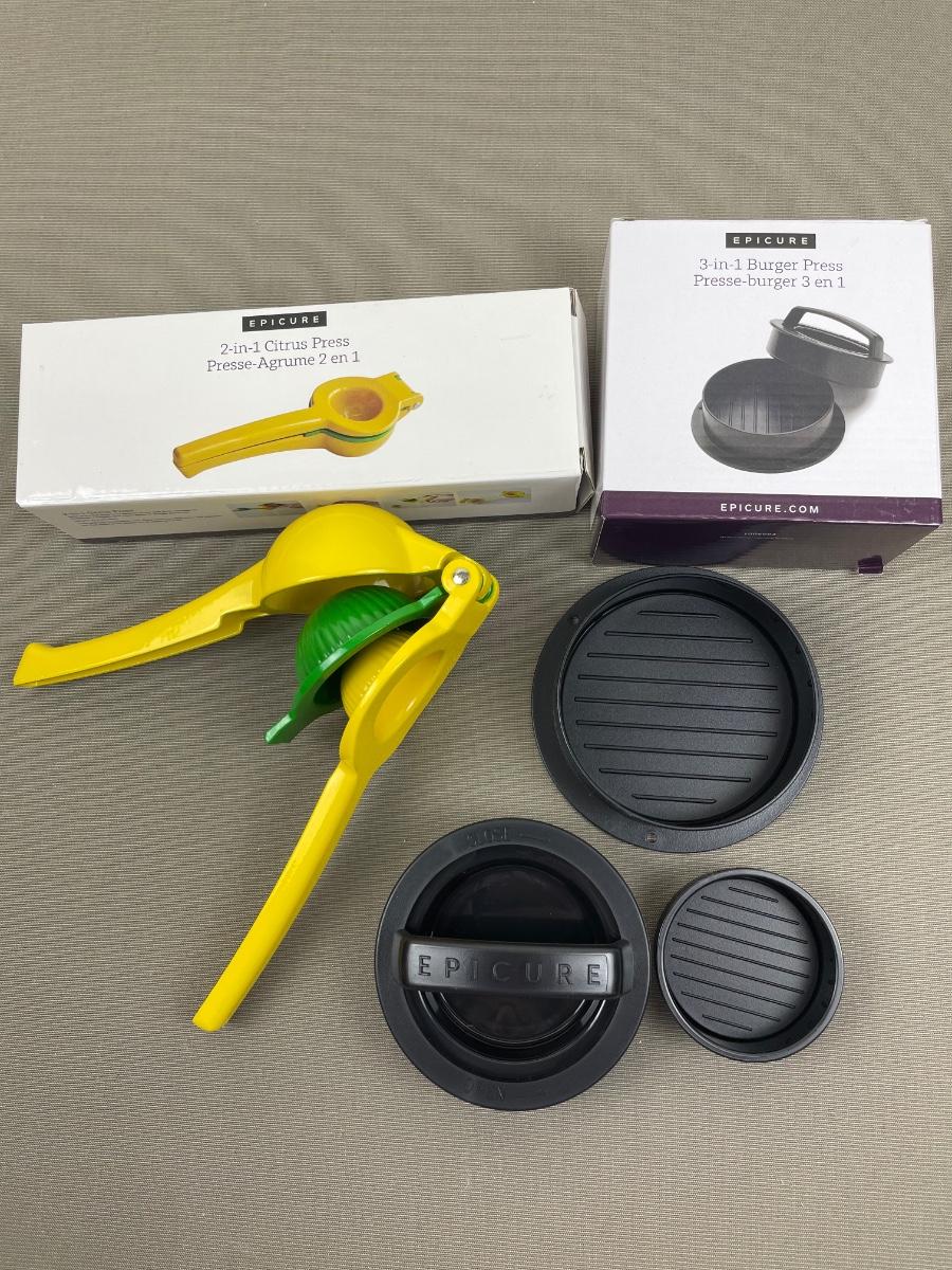 Citrus press and burger press, both new in boxes. Great for gifts!