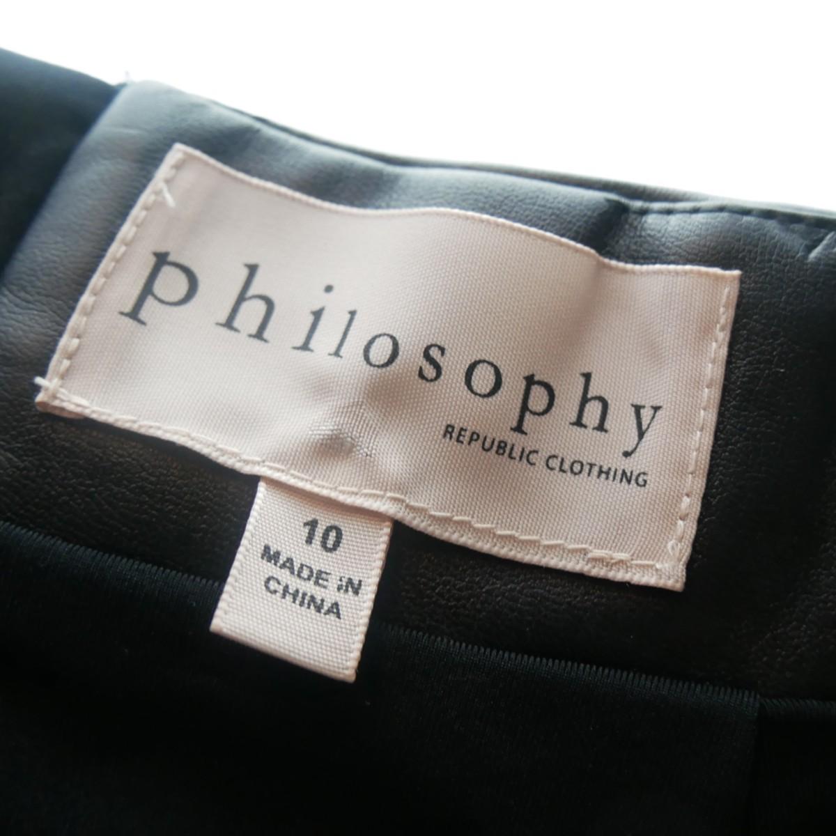 New with tags, Philosophy faux leather skirt in women's size 10. Wear and damage to skirt in various areas, see photos.