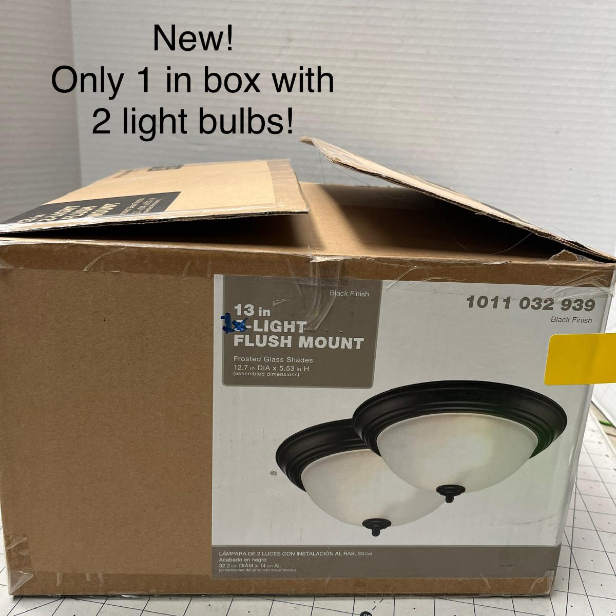 Includes frosted glass shade, two bulbs, 13" Black Finish Fixture.